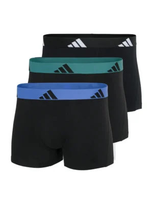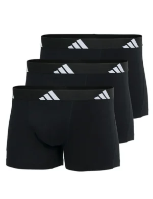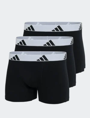 Ανδρικά μποξεράκια adidas σε πρακτική συσκευασία των 3 τεμαχίων. Διαθέτουν άνετη, ελαστική ζώνη με λογότυπο. Κατασκευασμένα από απαλό, ελαστικό βαμβάκι, ιδιαίτερα ανθεκτικ με υλικό τετραπλής ελαστικότητας. Σχεδιασμός που στεγνώνει γρήγορα και απορροφά την υγρασία.
