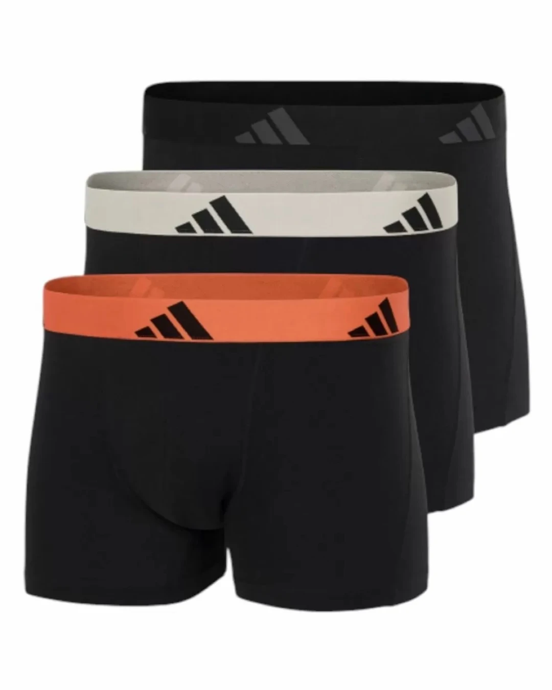 Ανδρικά μποξεράκια adidas σε πρακτική συσκευασία των 3 τεμαχίων. Διαθέτουν άνετη, ελαστική ζώνη με λογότυπο. Κατασκευασμένα από απαλό, ελαστικό βαμβάκι, ιδιαίτερα ανθεκτικ με υλικό τετραπλής ελαστικότητας. Σχεδιασμός που στεγνώνει γρήγορα και απορροφά την υγρασία.