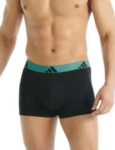 Ανδρικά μποξεράκια adidas σε πρακτική συσκευασία των 3 τεμαχίων. Διαθέτουν άνετη, ελαστική ζώνη με λογότυπο. Κατασκευασμένα από απαλό, ελαστικό βαμβάκι, ιδιαίτερα ανθεκτικ με υλικό τετραπλής ελαστικότητας. Σχεδιασμός που στεγνώνει γρήγορα και απορροφά την υγρασία.