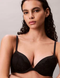 Σουτιέν Calvin Klein με δαντέλα, push up ενίσχυση και μπανέλα, με ρυθμιζόμενη τιράντα για συμβατική ή crossback εφαρμογή και πλάτη χωρίς ραφές.