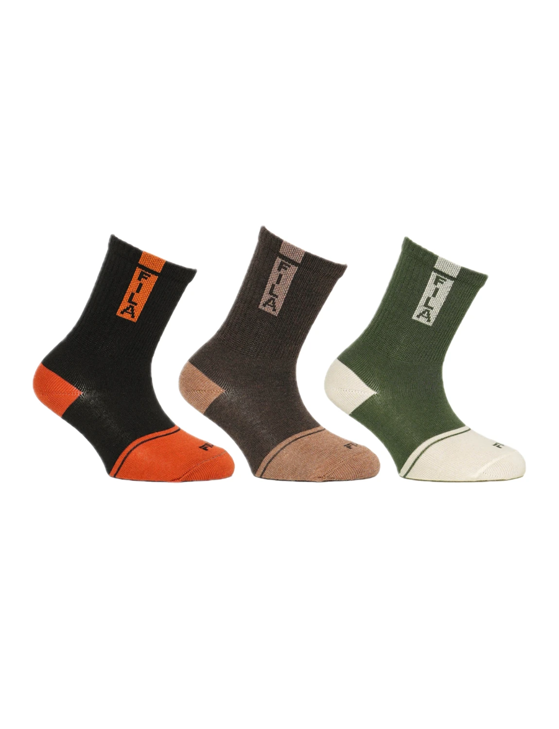 Κλασική κάλτσα για αγόρι με λογότυπο fila σε τρεις αποχρώσεις, κανονική εφαρμογή και ελαστικότητα. Υψηλής ποιότητας για βέλτιστη άνεση και αντοχή.