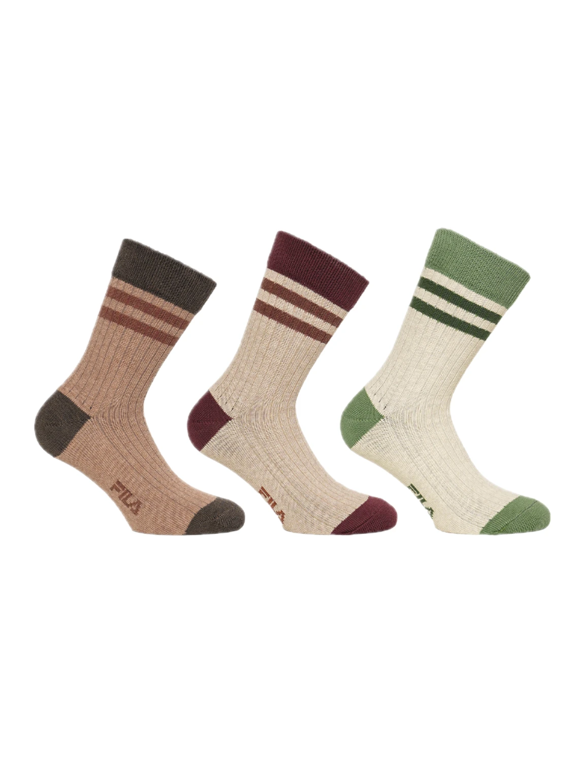 Κάλτσες από την fila. Η συσκευασία περιλαμβάνει τρία ζεύγη, εξασφαλίζοντας ότι θα έχεις πάντα ένα καθαρό ζευγάρι διαθέσιμο.