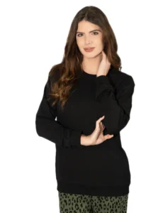 Ανακαλύψτε το απόλυτο σετ homewear που συνδυάζει στυλ και άνεση για τις χαλαρές σας στιγμές στο σπίτι. Το σετ αποτελείται από μονόχρωμη μπλούζα τύπου φούτερ με λαιμόκοψη και λεοπάρ χακί παντελόνι, προσφέροντας μία χαλαρή και αέρινη εφαρμογή. Το σχέδιο αυτό θυμίζει φόρμα, για επιπλέον άνεση και ελευθερία.