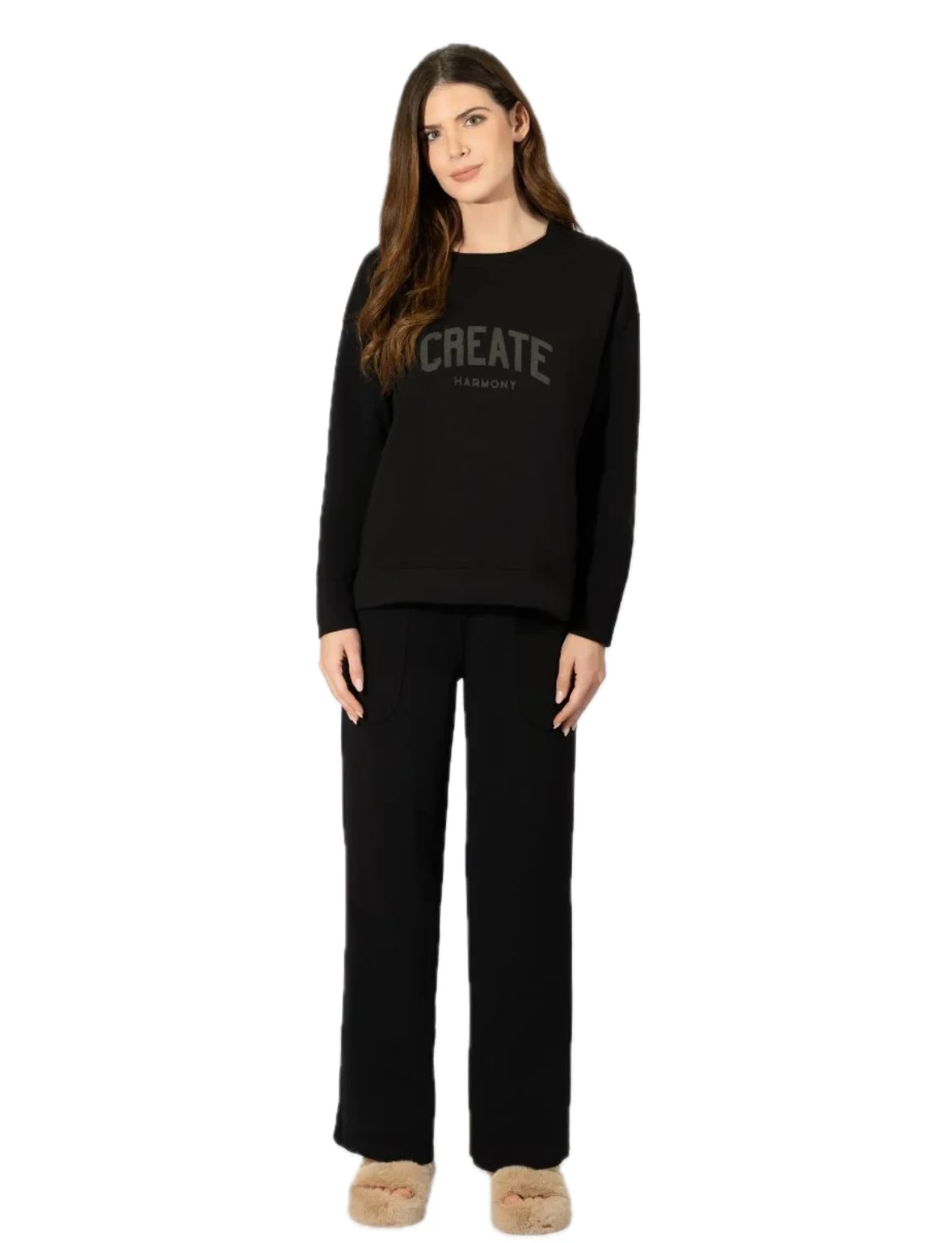 Ανακαλύψτε το απόλυτο σετ homewear που συνδυάζει στυλ και άνεση για τις χαλαρές σας στιγμές στο σπίτι. Το σετ αποτελείται από μπλούζα τύπου φούτερ με λαιμόκοψη και παντελόνι στο ίδιο χρώμα με τσέπες χωρίς λάστιχο στο κάτω μέρος, προσφέροντας μία χαλαρή και αέρινη εφαρμογή. Το σχέδιο αυτό θυμίζει φόρμα, για επιπλέον άνεση και ελευθερία κινήσεων.