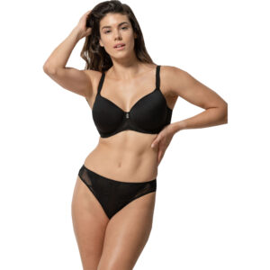 Balconette σουτιέν με μπανέλα και ελαφριά spacer ενίσχυση. Εξαιρετικά κομψό και διακοσμημένο με έξοχα ασημένια κοσμήματα και κρυστάλλινες πέτρες στην ένωση των cups. Κατάλληλο για βαρύ στήθος καθώς προσφέρει πλήρη κάλυψη.
