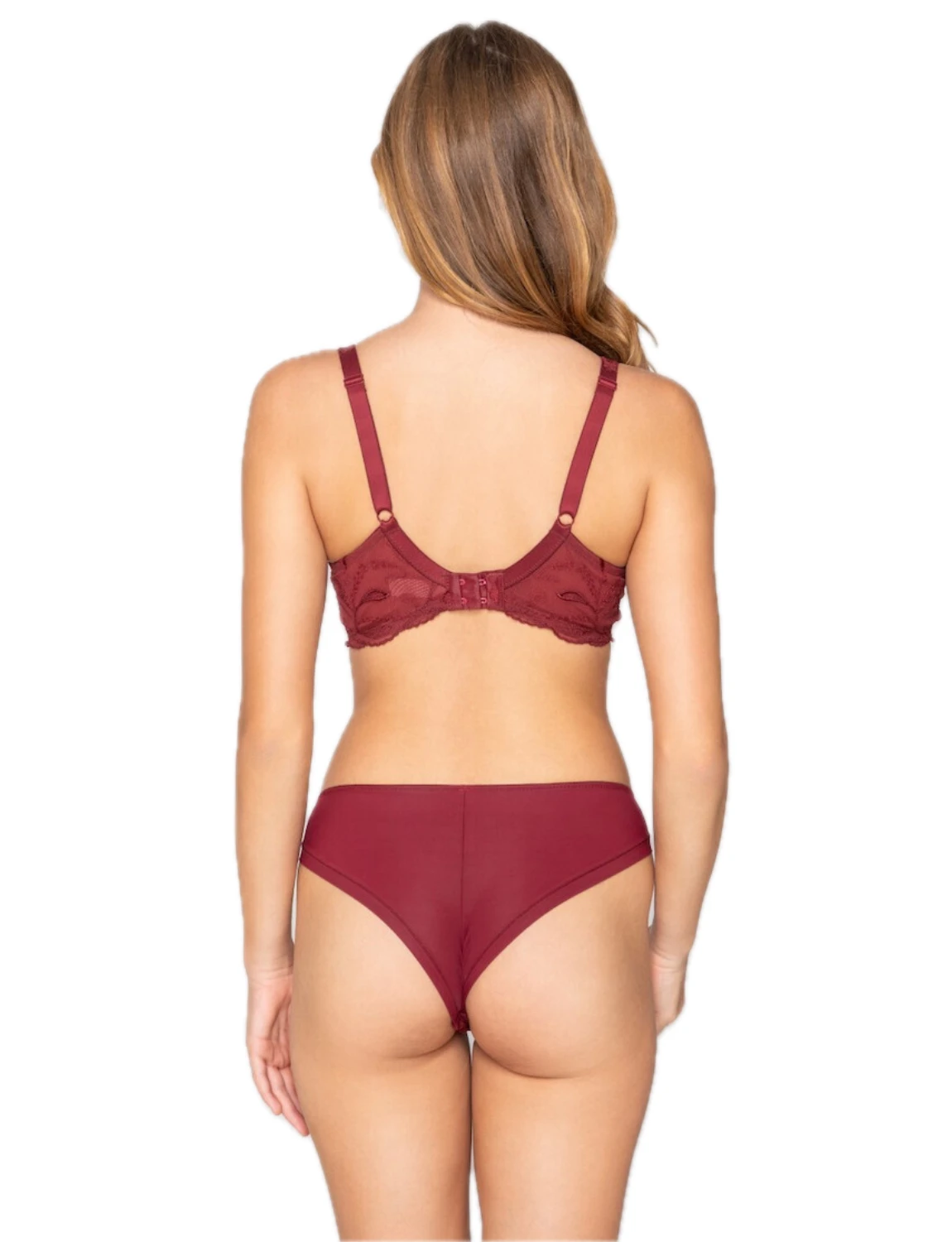 Balconette σουτιέν με μπανέλα και ελαφριά spacer ενίσχυση. Εξαιρετικά κομψό και διακοσμημένο με έξοχα ασημένια κοσμήματα και κρυστάλλινες πέτρες στην ένωση των cups. Κατάλληλο για βαρύ στήθος καθώς προσφέρει πλήρη κάλυψη.