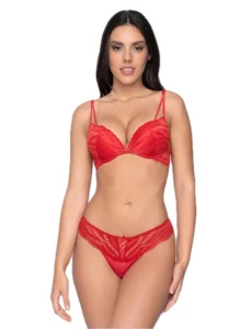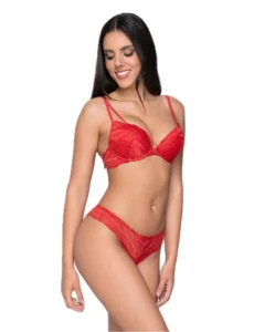 Super push up σουτιέν της σειράς Flirt από τη Luna. Cups με διπλή ενίσχυση (δεν αφαιρείται) και μπανέλες. Εξωτερικά και στα πλαϊνά έχει απαλή ζακάρ δαντέλα και διακριτικό κόσμημα στο κέντρο για extra λάμψη. Διαθέτει τριπλή τιράντα για σταθερό αλλά και παιχνιδιάρικο αποτέλεσμα και κουμπώνει με μονή κόπιτσα τεσσάρων θέσεων. Κολακεύει και δείχνει το στήθος 2 φορές μεγαλύτερο.