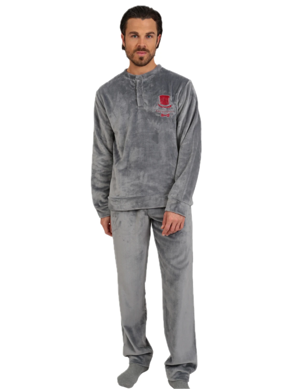 Ανδρική fleece πιτζάμα με πατιλέτα, από την Lydia Creations. Το σετ αποτελείται από μονόχρωμη μπλούζα με κουμπιά πατιλέτα και μονόχρωμο παντελόνι σε ίσια γραμμή με περιμετρικό λάστιχο στην μέση για πιο σταθερό κράτημα.