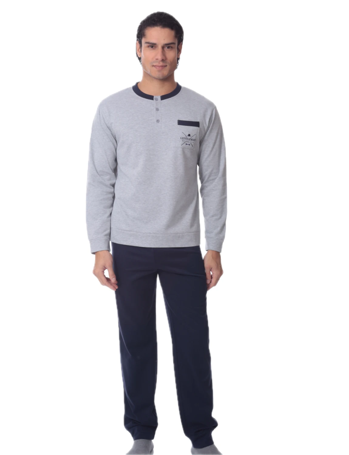 Ανδρική πιτζάμα με πατιλέτα, από την Lydia Creations. Το σετ αποτελείται από μονόχρωμη μπλούζα με κουμπιά πατιλέτα και μονόχρωμο παντελόνι σε ίσια γραμμή με περιμετρικό λάστιχο στην μέση για πιο σταθερό κράτημα.