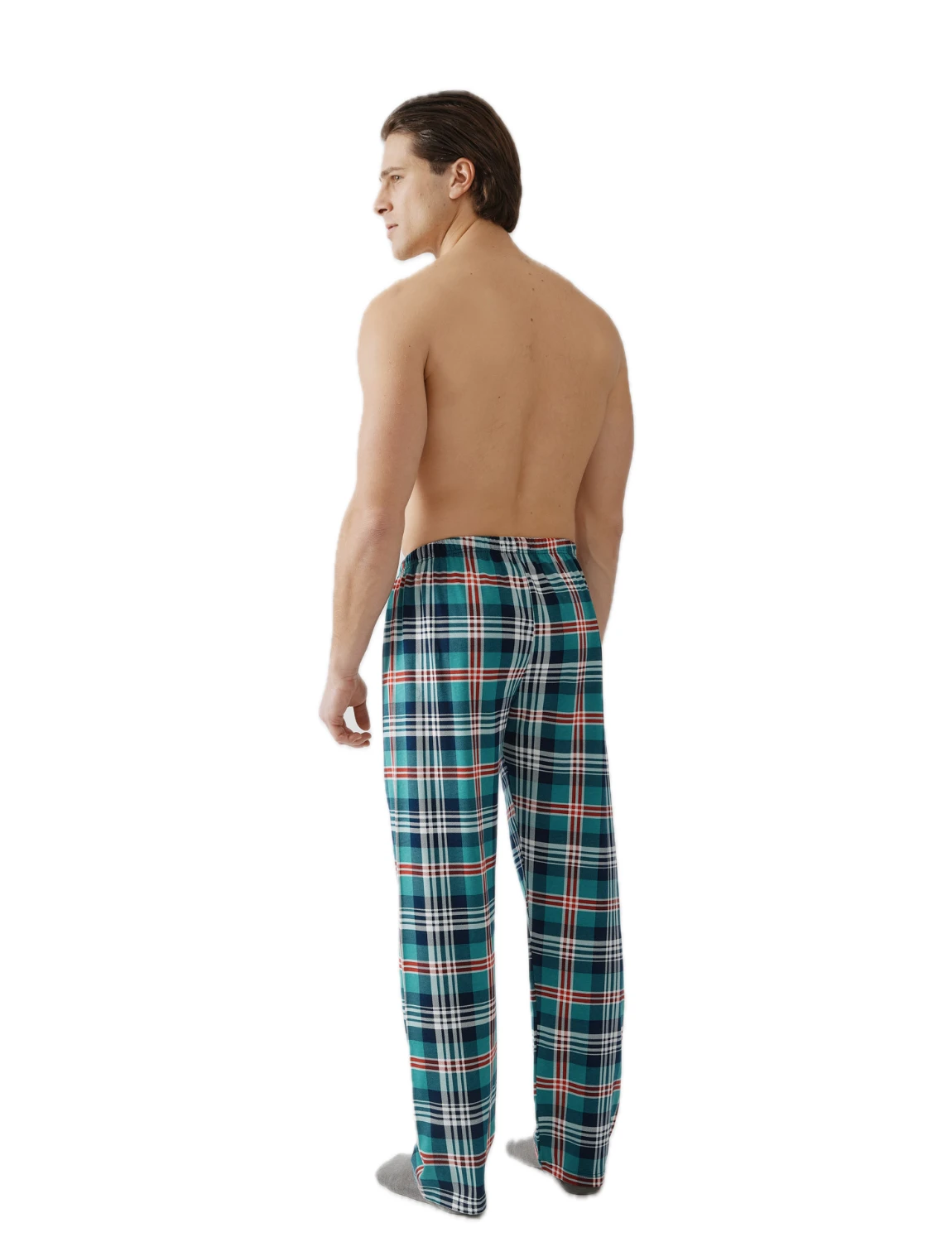 Ανδρικό παντελόνι πιτζάμας καρό με μπάσκα στο τελείωμα από βαμβακερό ύφασμα υψηλής ποιότητας.