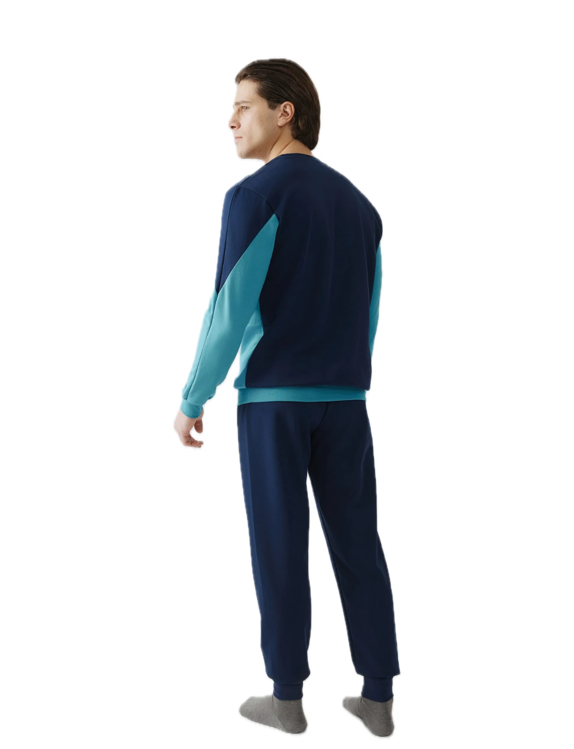 Χειμερινή πιτζάμα, ζεστή, από βαμβακερό φούτερ. Το σετ περιλαμβάνει μπλούζα με στρογγυλή λαιμόκοψη, διχρωμία, κέντημα στο στήθος και παντελόνι με μπάσκες στα τελειώματα.