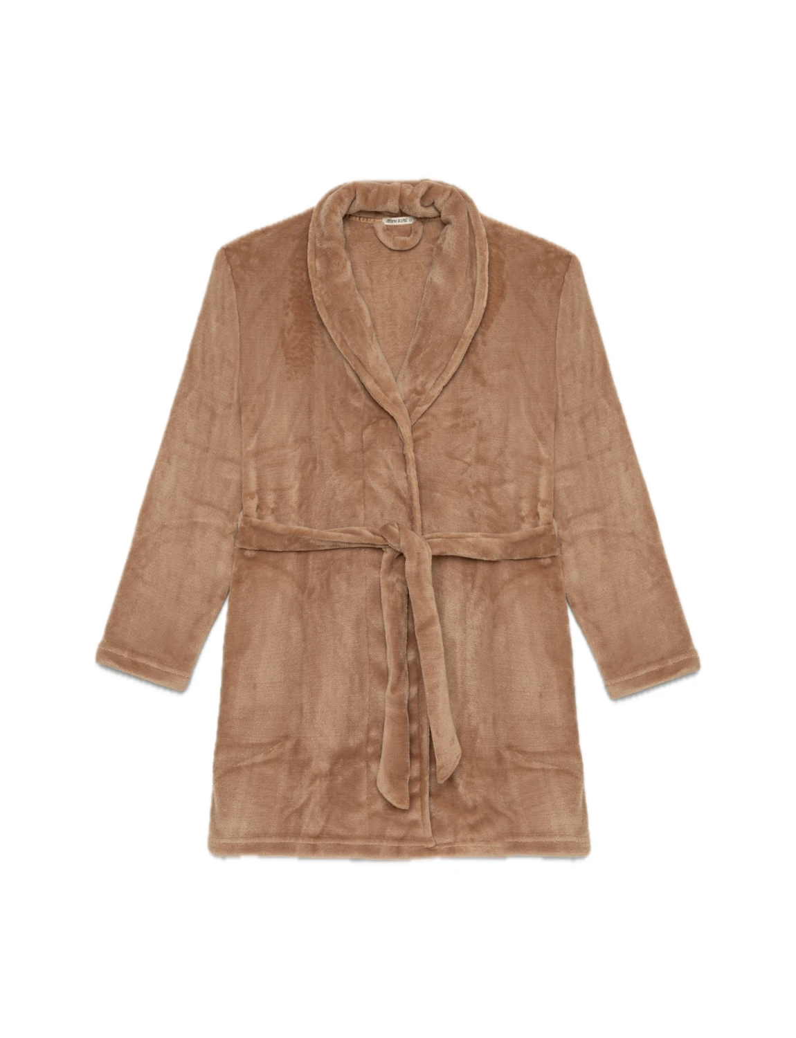 Pόμπα κοντή, πολύ ζεστή, από fleece ύφασμα με μεγάλα πέτα, πλαϊνές τσέπες και ζώνη στη μέση.