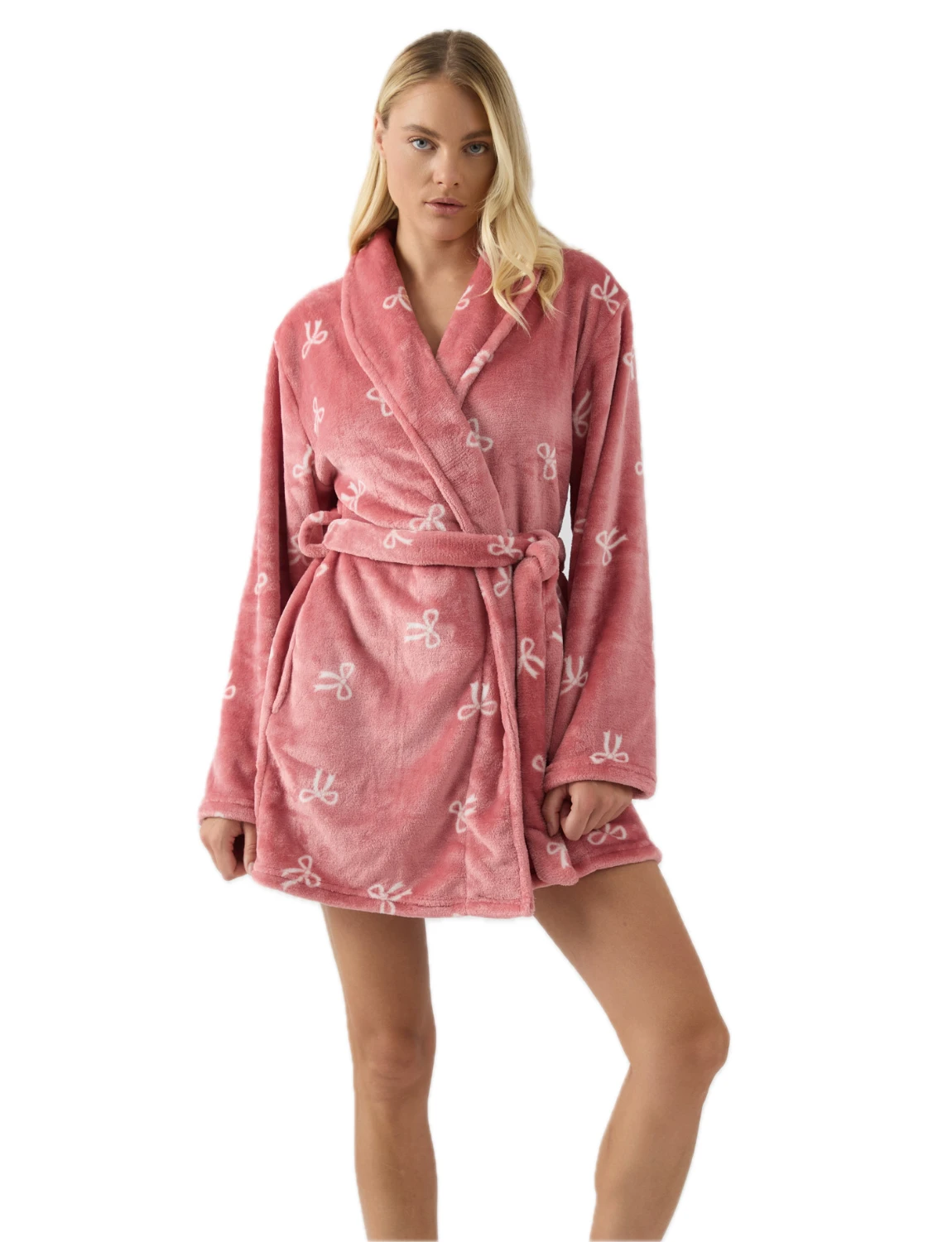 Pόμπα κοντή, πολύ ζεστή, από fleece ύφασμα με μεγάλα πέτα, πλαϊνές τσέπες και ζώνη στη μέση.