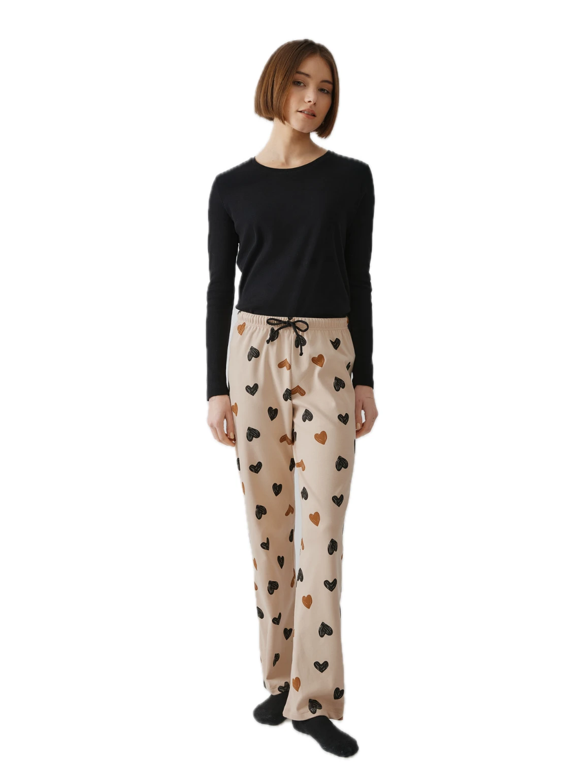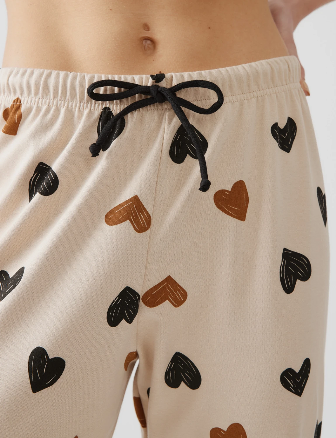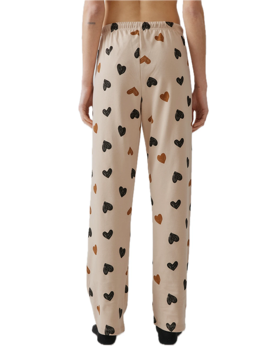 Μακρύ παντελόνι πιτζάμας από βαμβακερό ίντερλοκ τυπωμένο ύφασμα, υψηλής ποιότητας, με κορδόνι και λάστιχο στη μέση και ίσιο τελείωμα.
