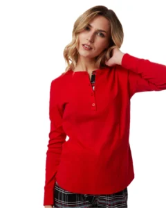 Το γυναικείο σετ πιτζάμας της εταιρίας Minerva είναι ιδανικό για τις κρύες χειμερινές νύχτες. Το άνετο και ζεστό ύφασμα του θα σας κρατήσει ζεστές και ευχάριστα περιποιημένες. Το σετ περιλαμβάνει μπλούζα μακρυμάνικη με στρογγυλή λαιμόκοψη και πατιλέτα με κουμπιά κουμπιά και παντελόνι καρό με ίσιο τελείωμα.