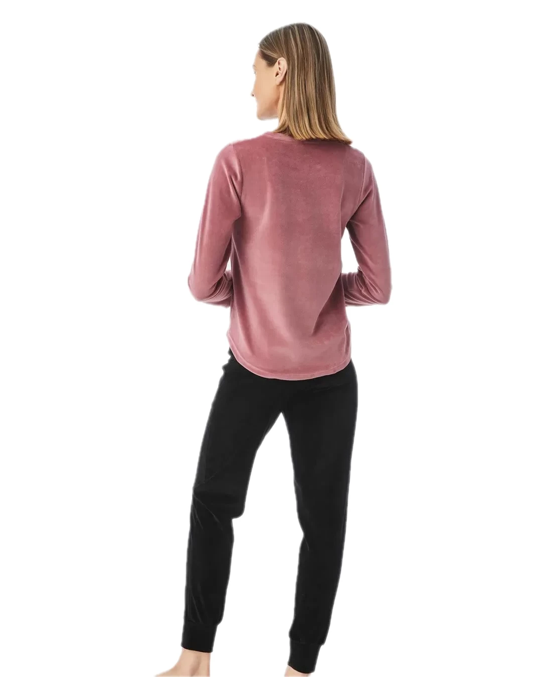 Το γυναικείο σετ πιτζάμας της εταιρίας Minerva είναι ιδανικό για τις κρύες χειμερινές νύχτες. Το άνετο και ζεστό ύφασμα του θα σας κρατήσει ζεστές και ευχάριστα περιποιημένες. Το σετ περιλαμβάνει μακρυμάνικη βελουτέ μπλούζα με στρογγυλή λαιμόκοψη και μονόχρωμο μακρύ βελουτέ παντελόνι, με μαλακή μπάσκα στο τελείωμα.