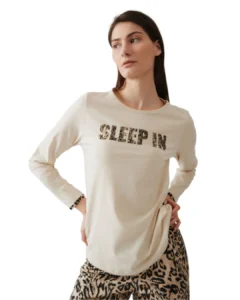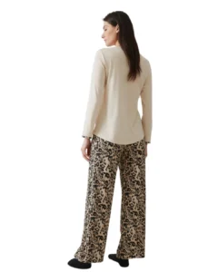 Xειμερινή πιτζάμα από μοντάλ και βαμβάκι υψηλής ποιότητας. Το σετ περιλαμβάνει μακρυμάνικη μπλούζα με τύπωμα στο στήθος και παντελόνι τυπωμένο all over, με ίσιο τελείωμα.