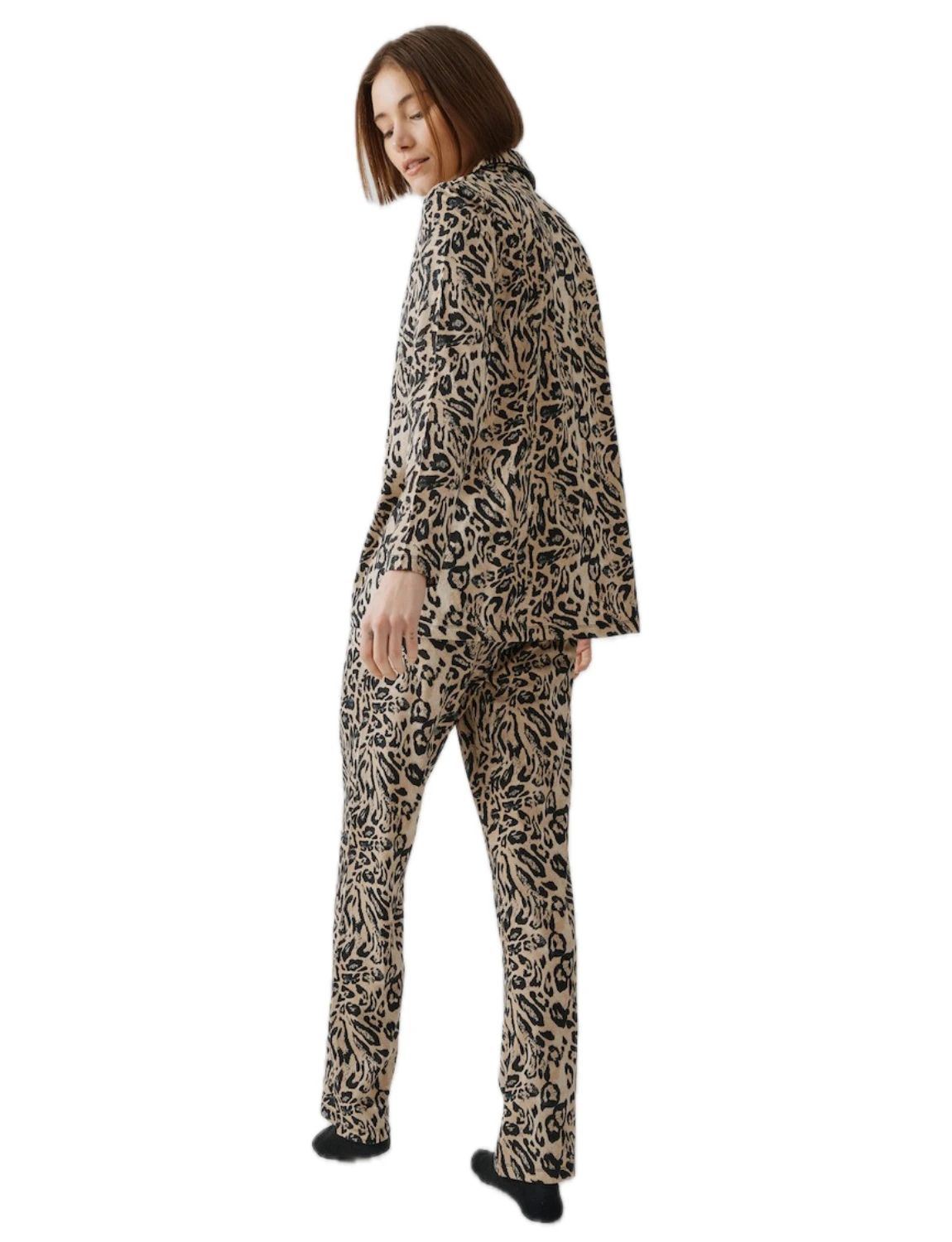 Χειμερινό σετ πιτζάμας από υψηλής ποιότητας φυσικές ίνες. Το σετ περιλαμβάνει μπλούζα κουμπωτή σε ίσια γραμμή, με γιακά και πέτο κουμπιά, κοντράστ ρέλια και παντελόνι μακρύ ίσιο