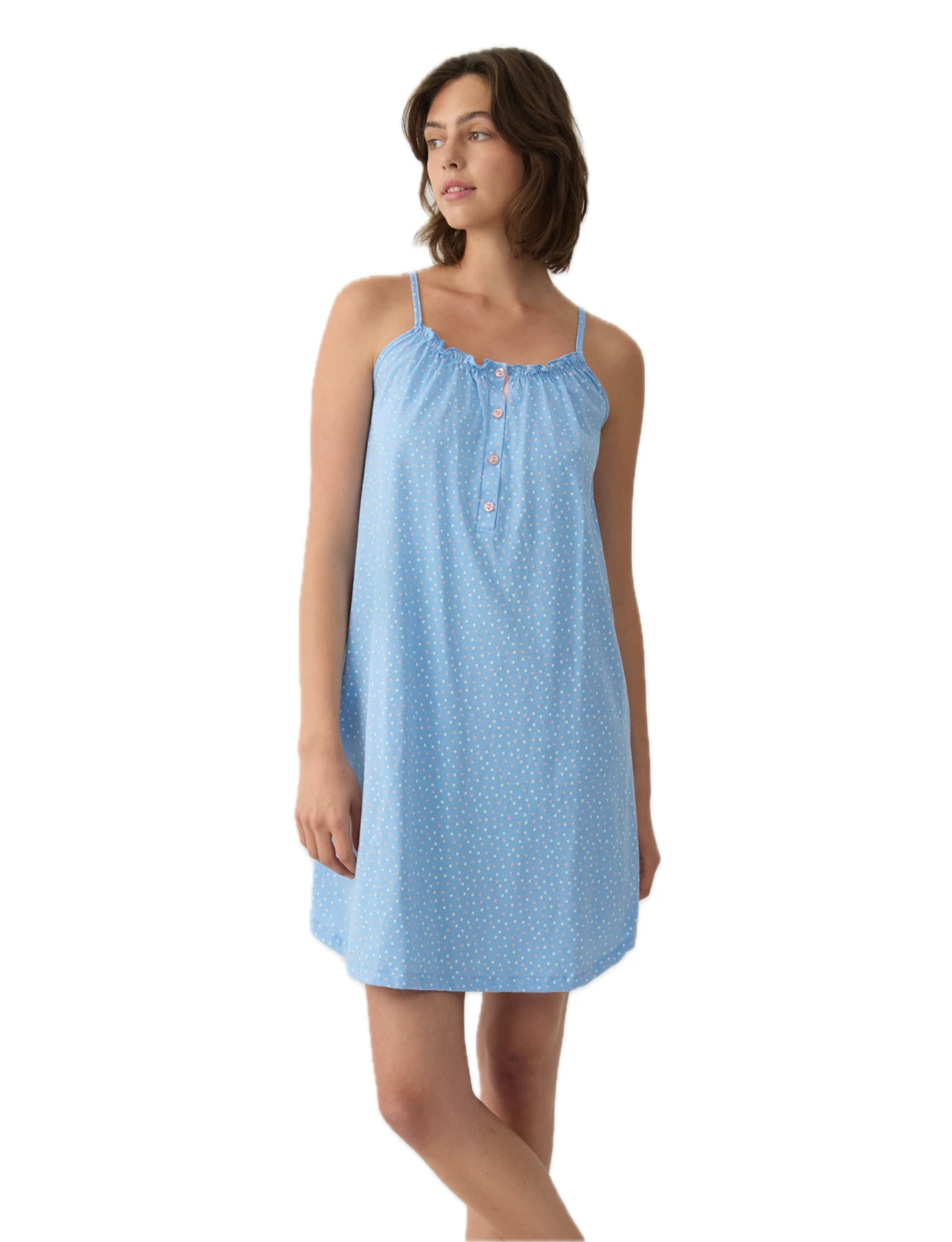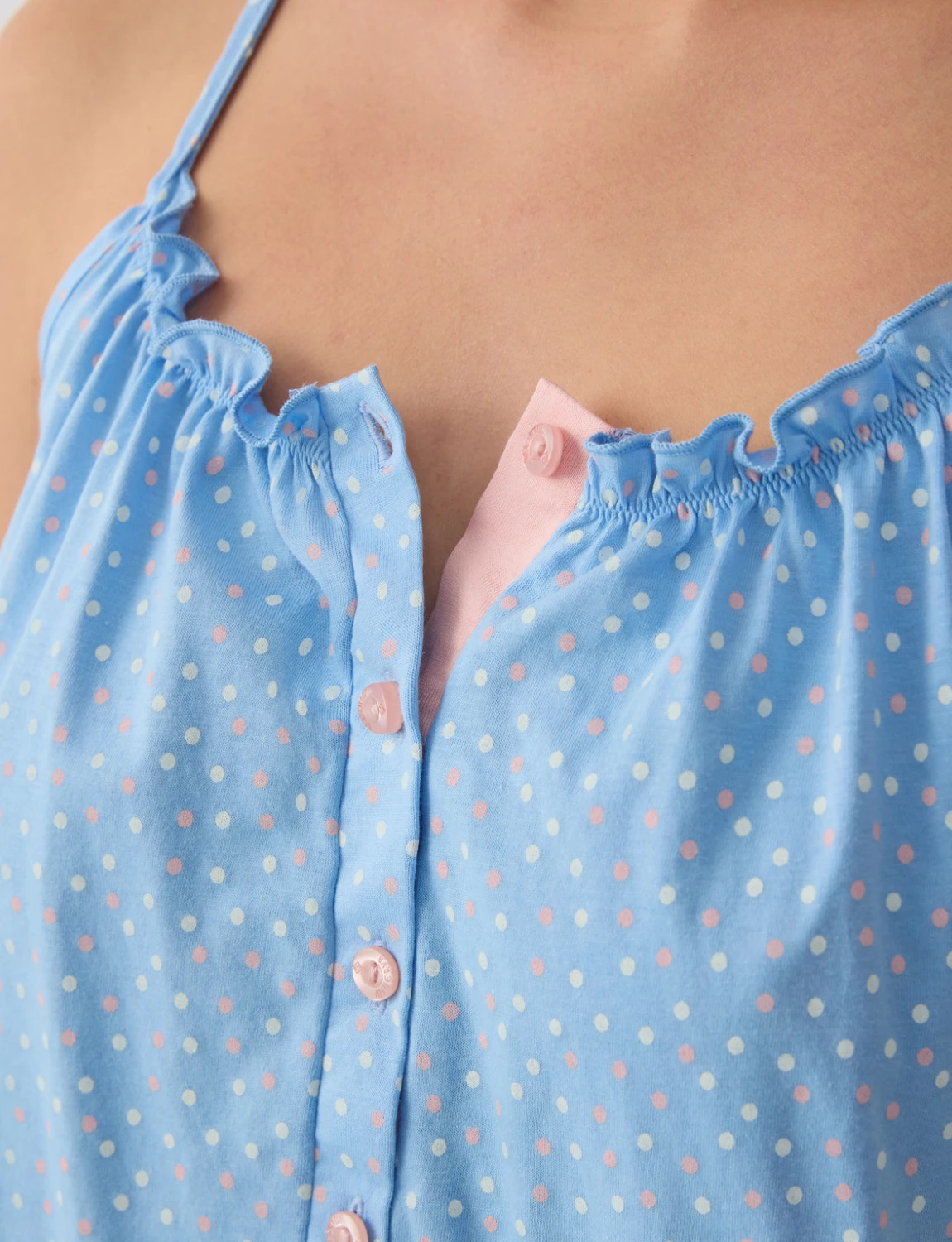 Νυχτικό εγκυμοσύνης και θηλασμού με λεπτές μπριτέλες, πατιλέτα και κουμπάκια στο μπροστινό μέρος για εύκολη και πρακτική πρόσβαση κατά τον θηλασμό. Κατασκευασμένο από βαμβακερό ύφασμα εξαιρετικής ποιότητας, προσφέρει απαλή αίσθηση και δροσερή άνεση καθ’ όλη τη διάρκεια της νύχτας. Η άνετη γραμμή αγκαλιάζει απαλά το σώμα, προσφέροντας ελευθερία κινήσεων και άνεση κατά την περίοδο της εγκυμοσύνης και μετά τον τοκετό.