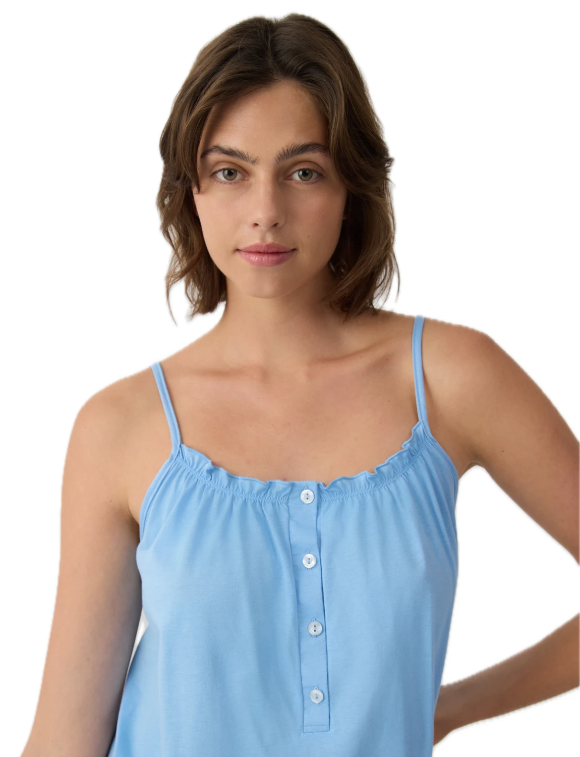 Νυχτικό εγκυμοσύνης και θηλασμού με λεπτές μπριτέλες, πατιλέτα και κουμπάκια στο μπροστινό μέρος για εύκολη και πρακτική πρόσβαση κατά τον θηλασμό. Κατασκευασμένο από βαμβακερό ύφασμα εξαιρετικής ποιότητας, προσφέρει απαλή αίσθηση και δροσερή άνεση καθ’ όλη τη διάρκεια της νύχτας. Η άνετη γραμμή αγκαλιάζει απαλά το σώμα, προσφέροντας ελευθερία κινήσεων και άνεση κατά την περίοδο της εγκυμοσύνης και μετά τον τοκετό.