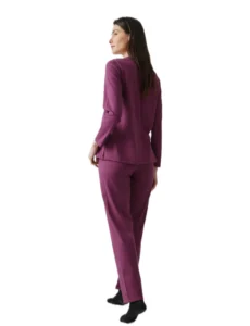 Γυναικεία πιτζάμα plus size από βαμβακερό ύφασμα υψηλής ποιότητας. Αποτελείται από μακρυμάνικη μονόχρωμη μπλούζα με στρόγγυλη λαιμόκοψη και τύπωμα μπροστά, καθώς μονόχρωμο παντελόνι σε ίσια γραμμή.