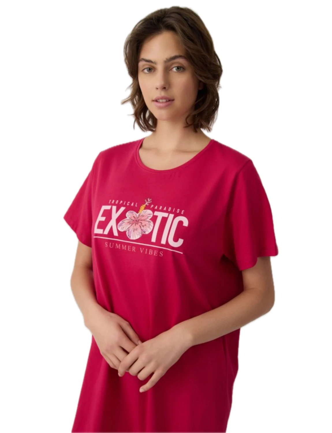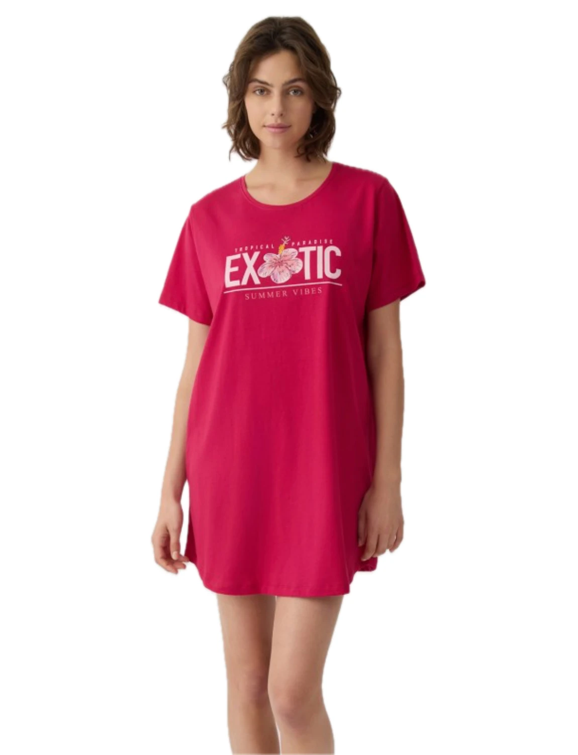 Boyfriend T-shirt Dress με κοντό μανίκι και διακοσμητικό τύπωμα στο στήθος που προσθέτει μοντέρνα και θηλυκή πινελιά. Κατασκευασμένο από βαμβακερό ύφασμα εξαιρετικής ποιότητας, προσφέρει απαλή αίσθηση και δροσερή άνεση καθ’ όλη τη διάρκεια της νύχτας.