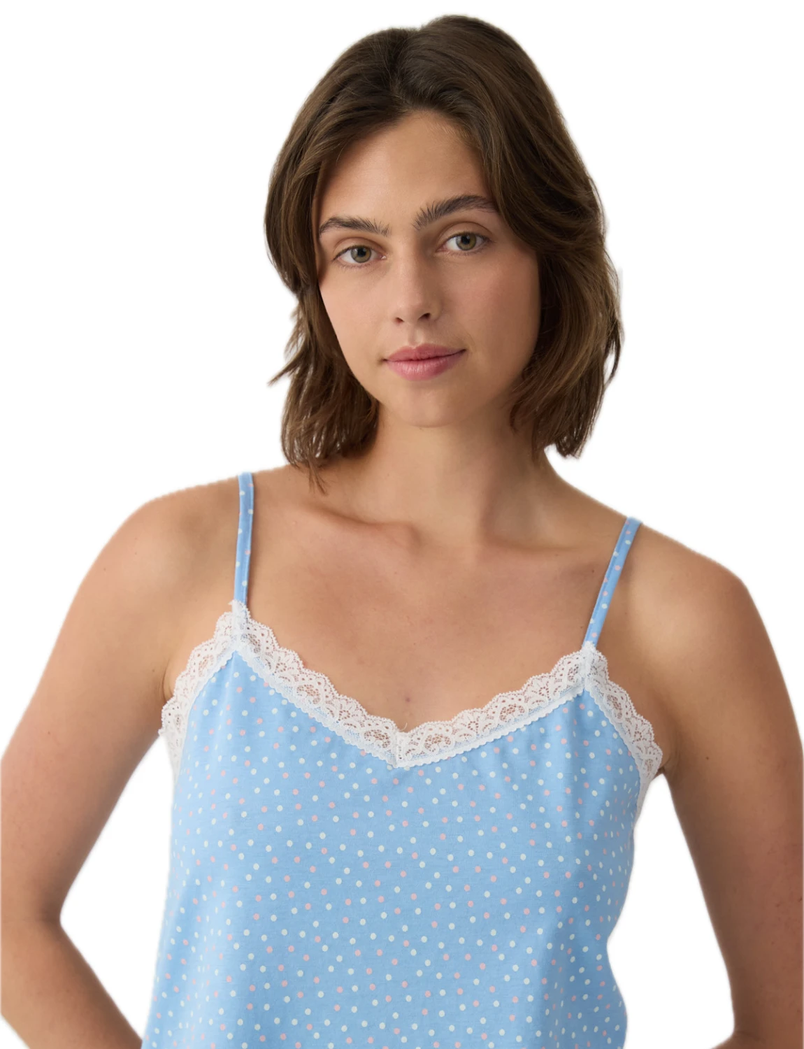 Σετ πιτζάμας από βαμβακερό ύφασμα εξαιρετικής ποιότητας με διακριτικό all over τύπωμα. Το σετ αποτελείται από τοπ με λεπτές μπριτέλες και κομψή λεπτομέρεια δαντέλας στο ντεκολτέ, καθώς και κοντό σορτς με λάστιχο στη μέση για άνετη και σταθερή εφαρμογή.