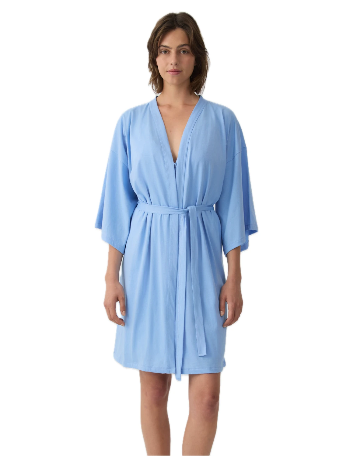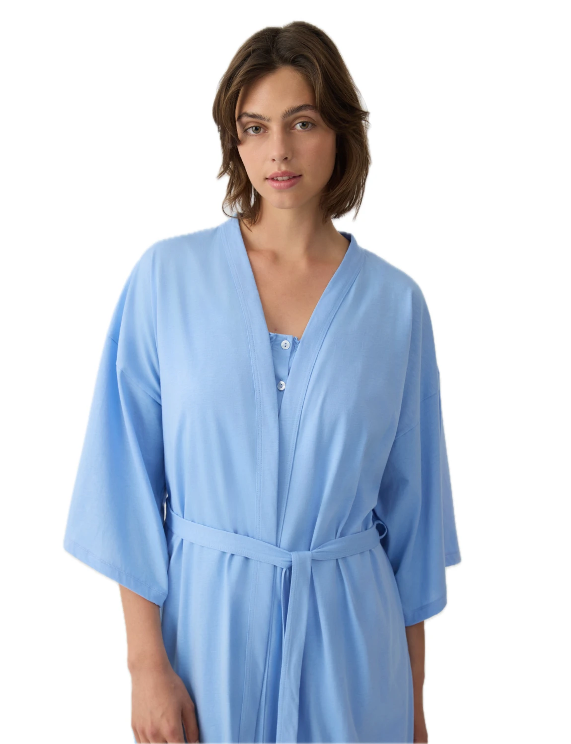 Μονόχρωμη ρόμπα σε στυλ κιμονό, κατασκευασμένη από βαμβακερό ύφασμα εξαιρετικής ποιότητας που προσφέρει δροσερή αίσθηση και άνεση. Διαθέτει ζώνη στη μέση για ρυθμιζόμενη εφαρμογή και κομψή, χαλαρή γραμμή που χαρίζει ελευθερία κινήσεων. Ιδανική για χρήση πάνω από νυχτικά ή πιτζάμες, ολοκληρώνοντας ένα άνετο και κομψό σύνολο.