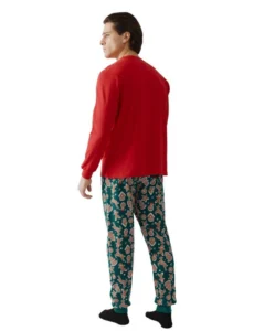 Xριστουγεννιάτικη πιτζάμα από βαμβακερό ύφασμα υψηλής ποιότητας. Το σετ περιλαμβάνει μπλούζα μακρυμάνικη με τύπωμα μπροστά και μπάσκα στα μανίκια και παντελόνι τυπωμένο all over, μακρύ με μάσκα στο τελείωμα.