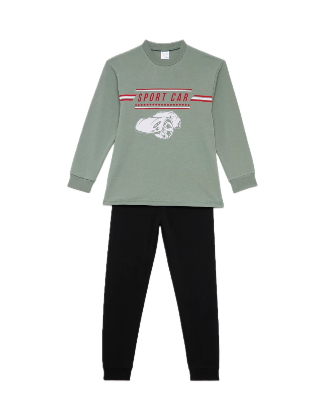 Παιδική χειμερινή πιτζάμα από βαμβακερό ύφασμα, υψηλής ποιότητας. Το σετ περιλαμβάνει μακρυμάνικη μονόχρωμη μπλούζα με στρογγυλή λαιμόκοψη και τύπωμα και μονόχρωμο παντελόνι με μαλακό λάστιχο στο τελειώμα.