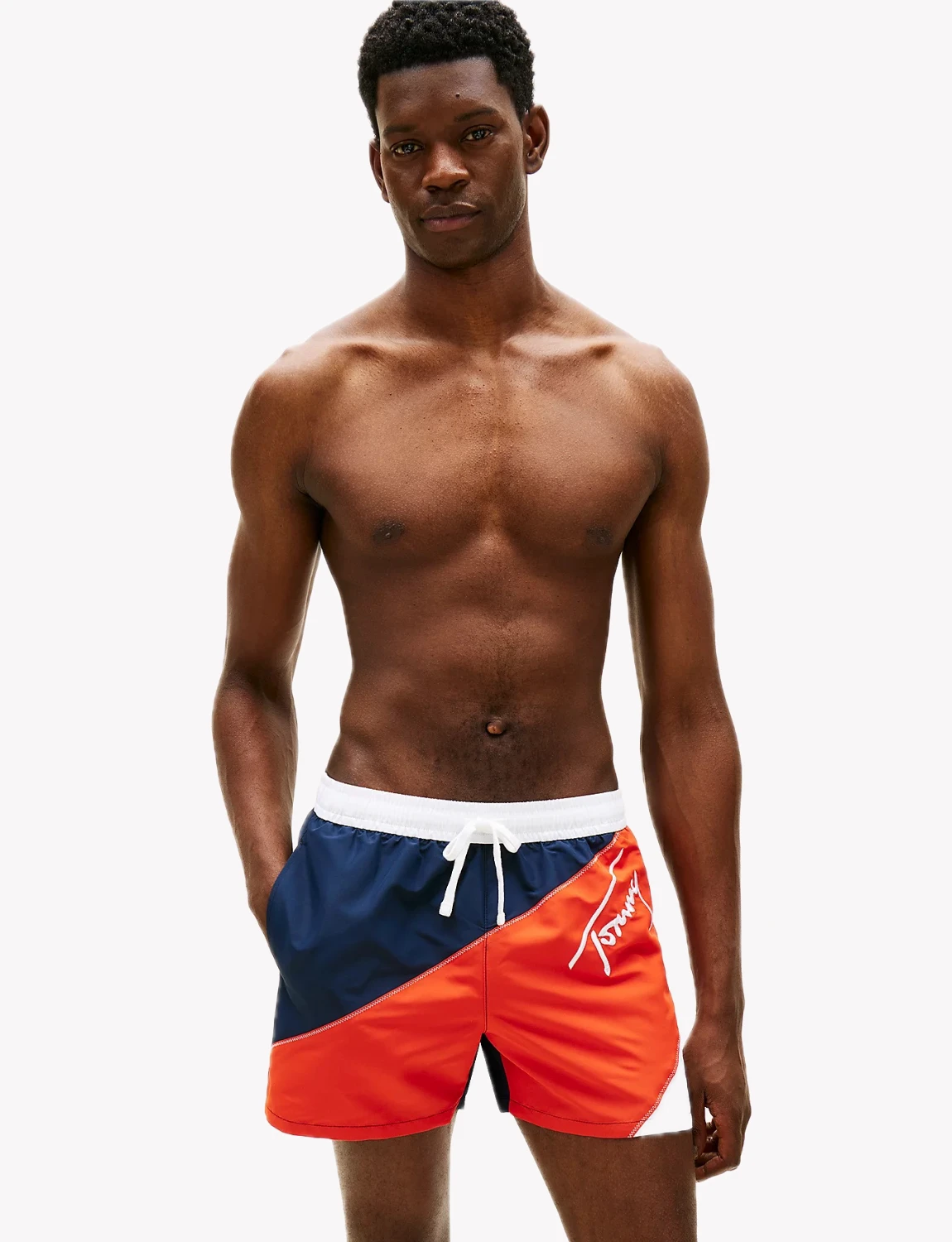 Ανδρικό μαγιό Tommy Hilfiger. Διαθέτει ελαστική μέση με κορδόνι περίσφιξης, δύο πλαϊνές τσέπες και μία στο πίσω μέρος.