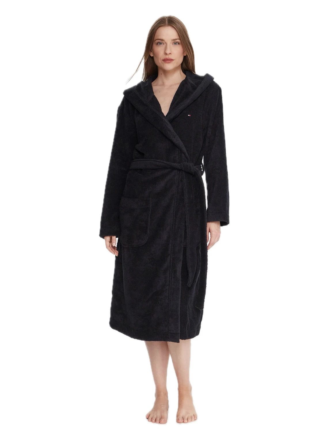 Ρόμπα/μπουρνούζι από τη συλλογή Tommy Hilfiger κατασκευασμένο από ύφασμα frotte. Μοντέλο από εξαιρετικά άνετο βαμβακερό υλικό. Διαθέτει κουκούλα, ζώνη στη μέση και τσέπες.