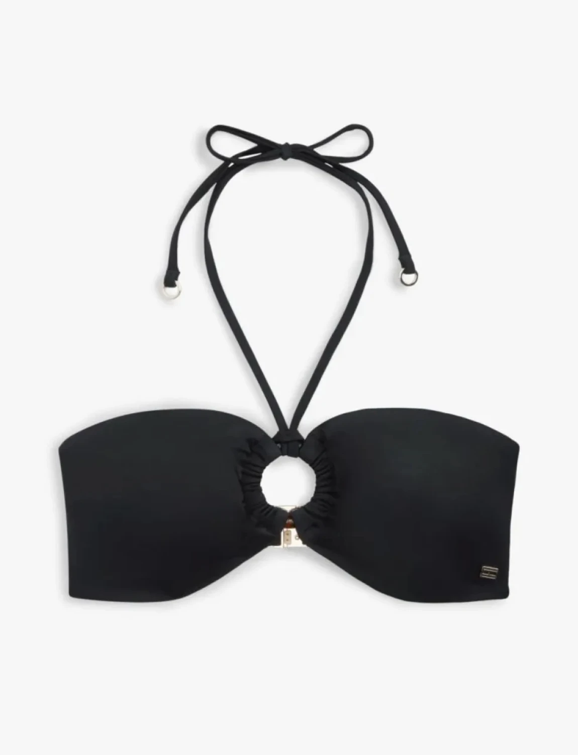 Δείξτε κομψότητα δίπλα στην πισίνα με αυτό το διαχρονικό μπικίνι τοπ bandeau. Διαθέτει αποσπώμενο halterneck δέσιμο για ευέλικτο styling και μεταλλικές branded λεπτομέρειες, κούμπωμα με χρυσό κλιπ στο πίσω μέρος και επενδυμένα cups.