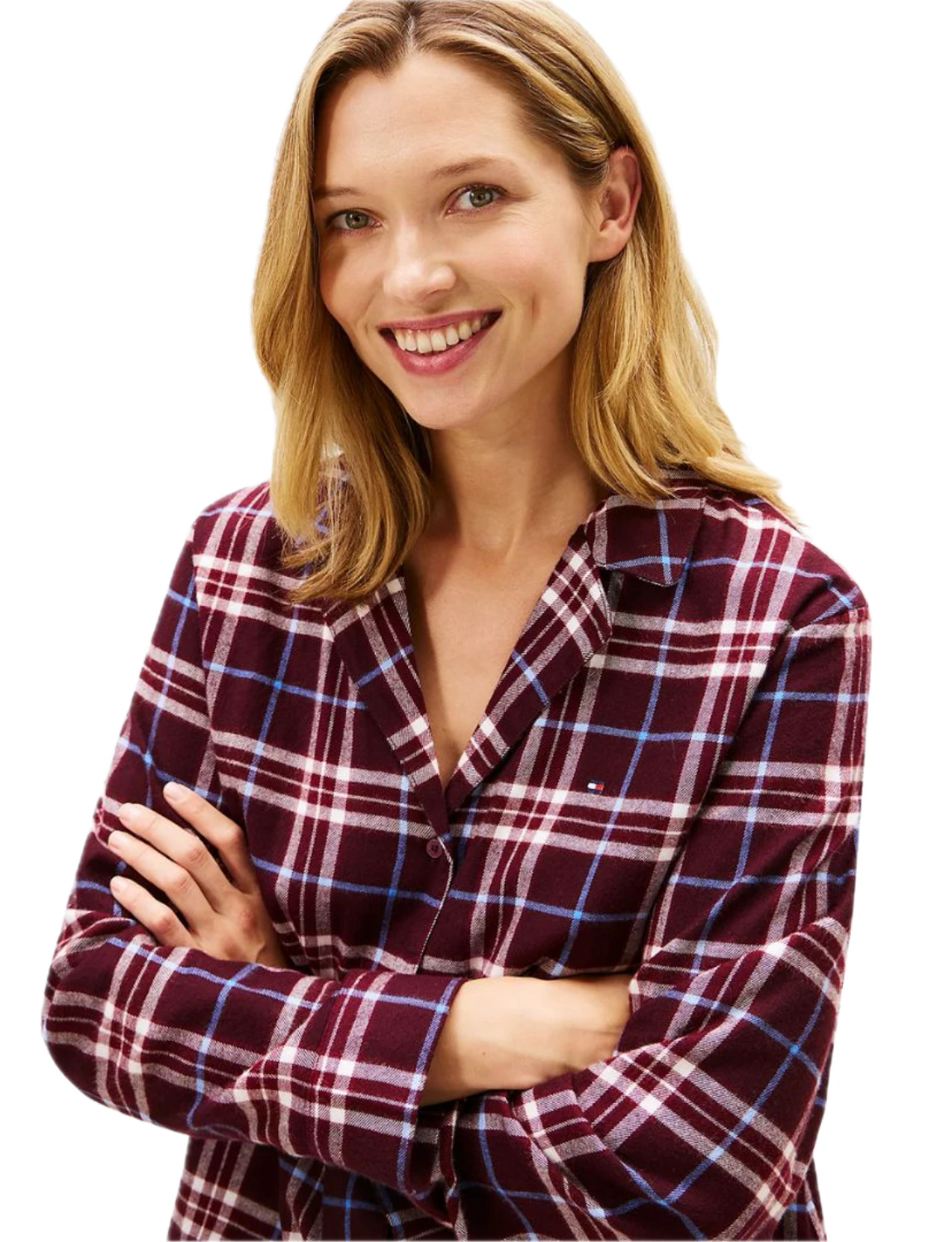 Χειμερινή πιτζάμα από βαμβακερό ύφασμα, υψηλής ποιότητας. καρό μπλούζα με κουμπιά και γιακά σε στυλ πουκάμισο, με κέντημα σημαίας Tommy Hilfiger στο στήθος και ίσιο καρό παντελόνι με λάστιχο και κορδόνι στη μέση. Χαλαρή εφαρμογή.