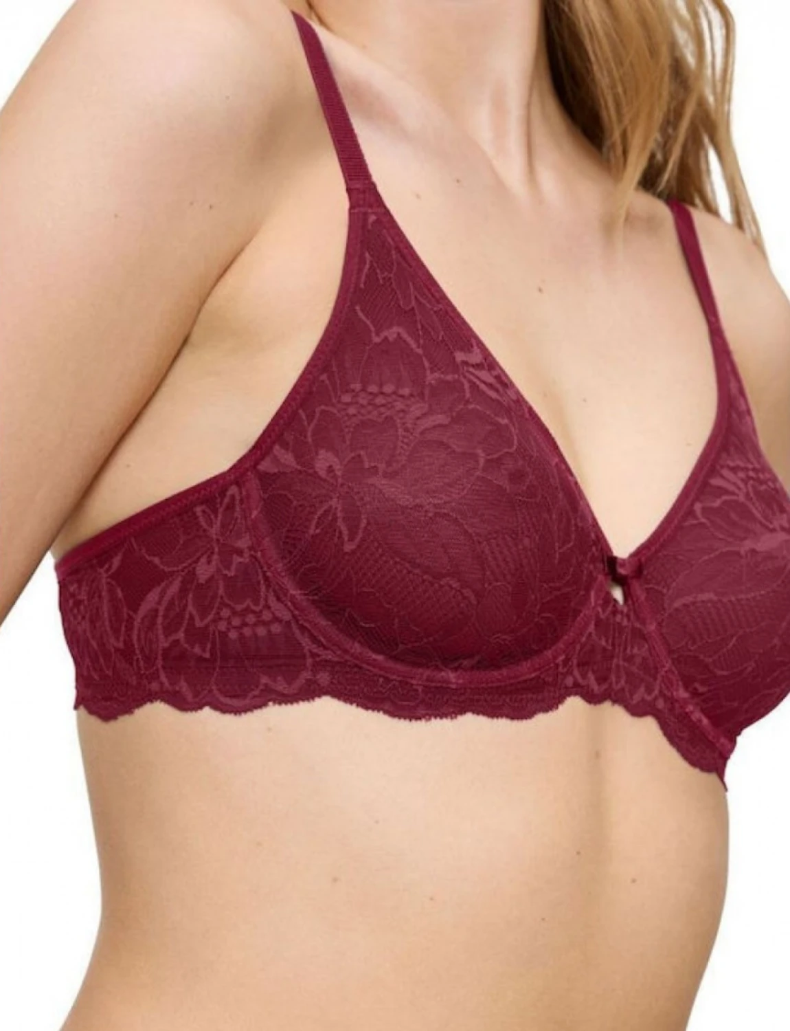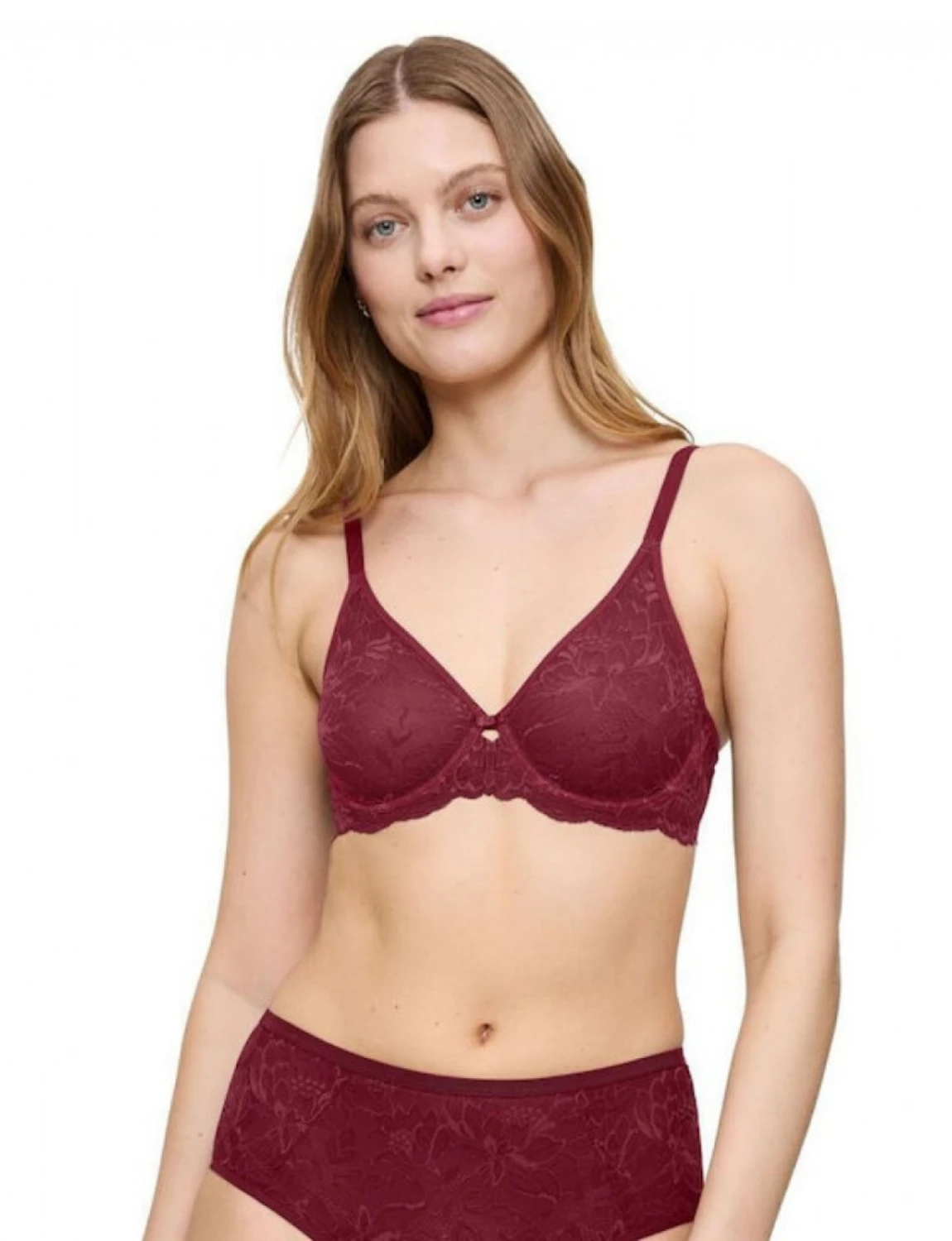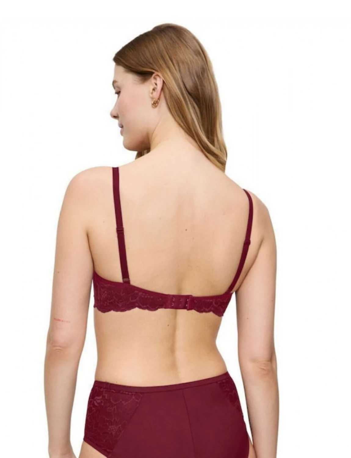 Σουτιέν με μπανέλα, ρυθμιζόμενες τιράντες, φαρδιά πλαϊνά και προφορμαρισμένες cups για φυσική διαμόρφωση στο στήθος. Δαντέλα σε συνδυασμό με ειδική φόδρα για απόλυτη στήριξη.