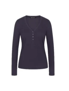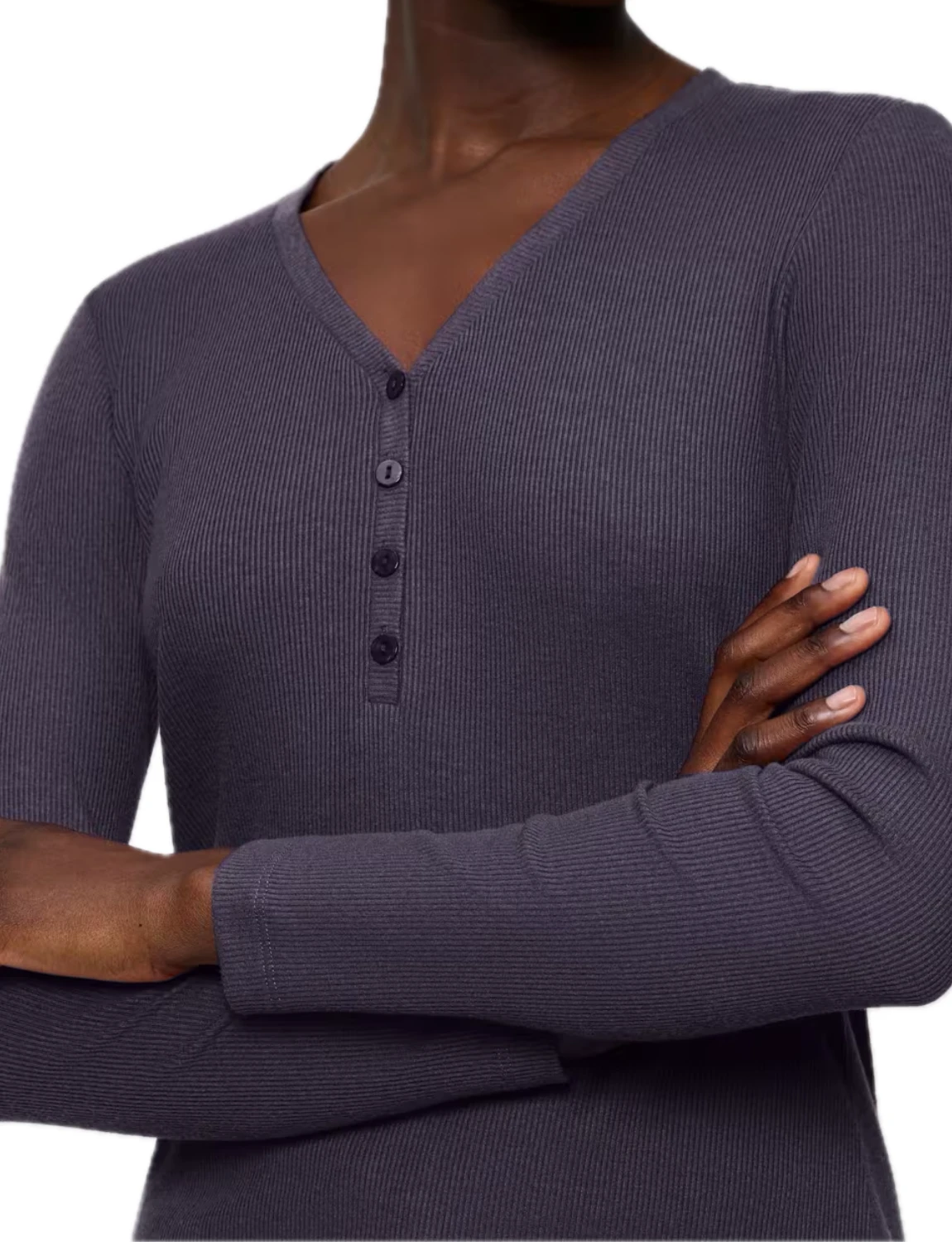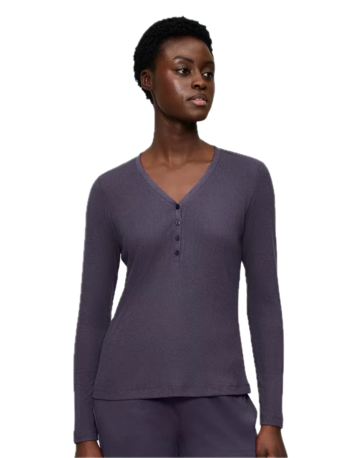 Μακρυμάνικη μπλούζα πιτζάμας με V-σχήματος λαιμόκοψη, κουμπιά στο μπροστινό μέρος για ρυθμιζόμενο άνοιγμα από μαλακό ύφασμα brushed-rib για απαλή ζεστασιά.