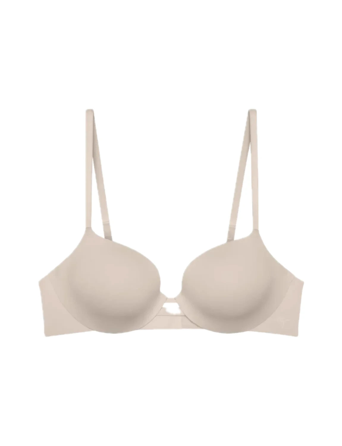 Αυτό το σουτιέν χρησιμεύει ως η τέλεια βάση για κάθε σύνολο. Υποστηρικτικό αλλά και λεπτό, προσφέρει την αίσθηση ότι δεν φοράτε τίποτα απολύτως. Κατασκευασμένο για άνεση και διακριτικότητα κάτω από τα ρούχα, αυτό το σουτιέν με μεσαία κάλυψη και συρμάτινες βάσεις ημι-ενίσχυσης αποτελεί απαραίτητο κομμάτι γκαρνταρόμπας. Το συρμάτινο νήμα άνεσης παρέχει απαλή στήριξη, ενώ οι μαλακά συνδεδεμένες τιράντες άνεσης προσφέρουν μια εξαιρετικά ευχάριστη εμπειρία χρήσης. Τα ελαφριά cups από αφρώδες υλικό, οι αόρατες ραφές και οι μοντέρνες λεπτομέρειες στο κέντρο του μπροστινού μέρους δημιουργούν μια καθαρή, αεροδυναμική σιλουέτα.