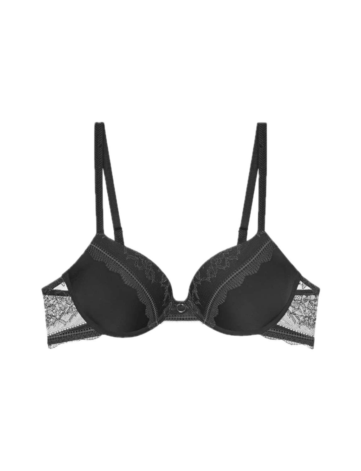 Αυτό το γυναικείο σουτιέν με μπανέλα συνδυάζει κομψότητα και άνεση, προσφέροντας άψογη στήριξη και φυσικά διαμορφωμένο μπούστο χάρη στη φοδραρισμένη του κατασκευή. Η απαλή δίχρωμη φλοράλ δαντέλα χαρίζει ρομαντικό και εκλεπτυσμένο χαρακτήρα, ενώ ο διακοσμητικός χρυσός κρίκος στο κέντρο προσθέτει μία διακριτική πινελιά πολυτέλειας. Οι ρυθμιζόμενες τιράντες εξασφαλίζουν εξατομικευμένη εφαρμογή, ενώ το κούμπωμα με κοπίτσα στην πλάτη προσφέρει σταθερότητα και ευκολία στην εφαρμογή.