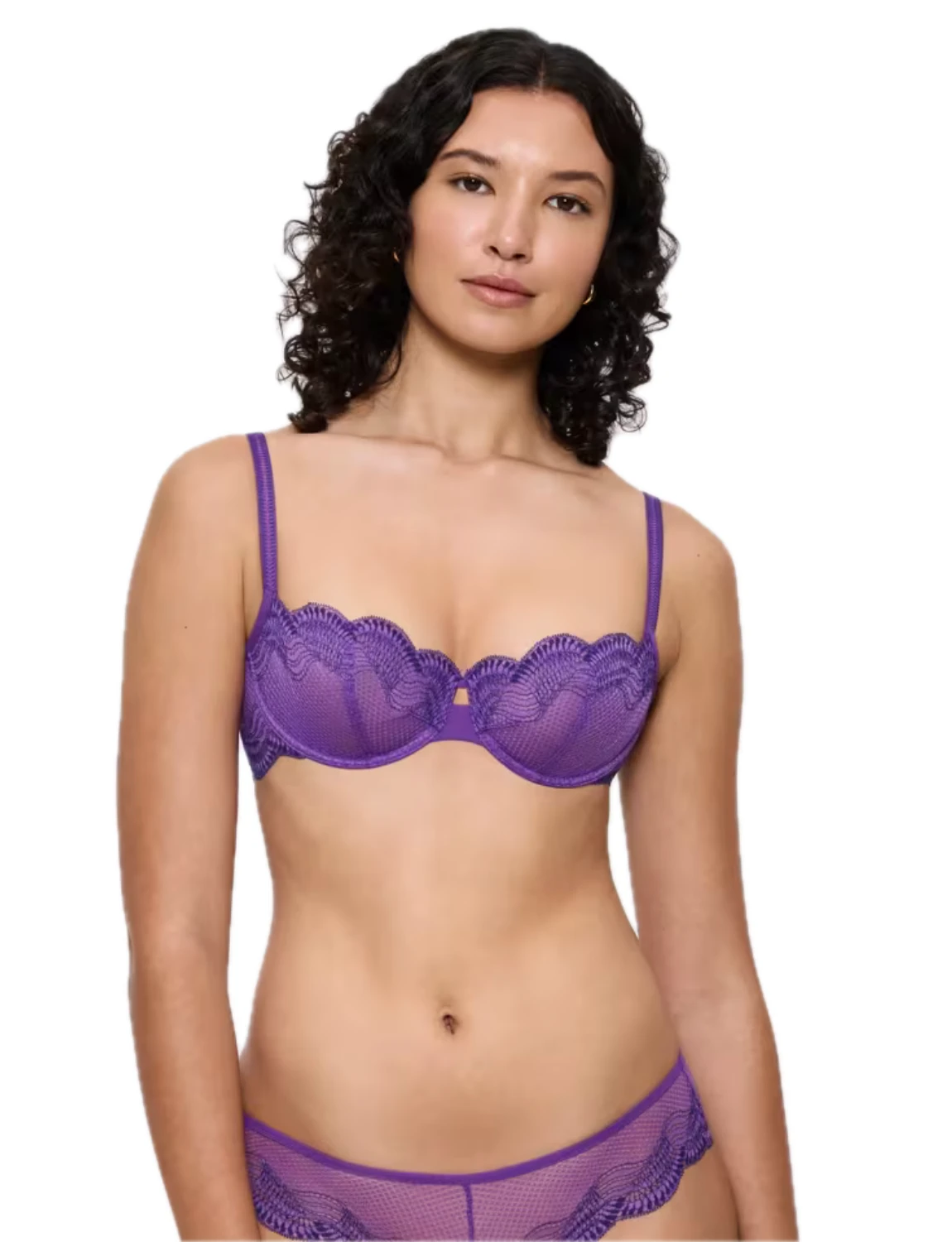 Αποκαλυπτικό balconette σουτιέν με μπανέλα, χωρίς ενίσχυση, και εύκαμπτο comfort wire για πρόσθετη στήριξη και άνεση. Πλήρης κάλυψη δίχρωμης δαντέλας σε cups και wings για εκλεπτυσμένη κομψότητα. Οι διακοσμητικές τιράντες προσθέτουν μια λεπτή θηλυκή πινελιά.