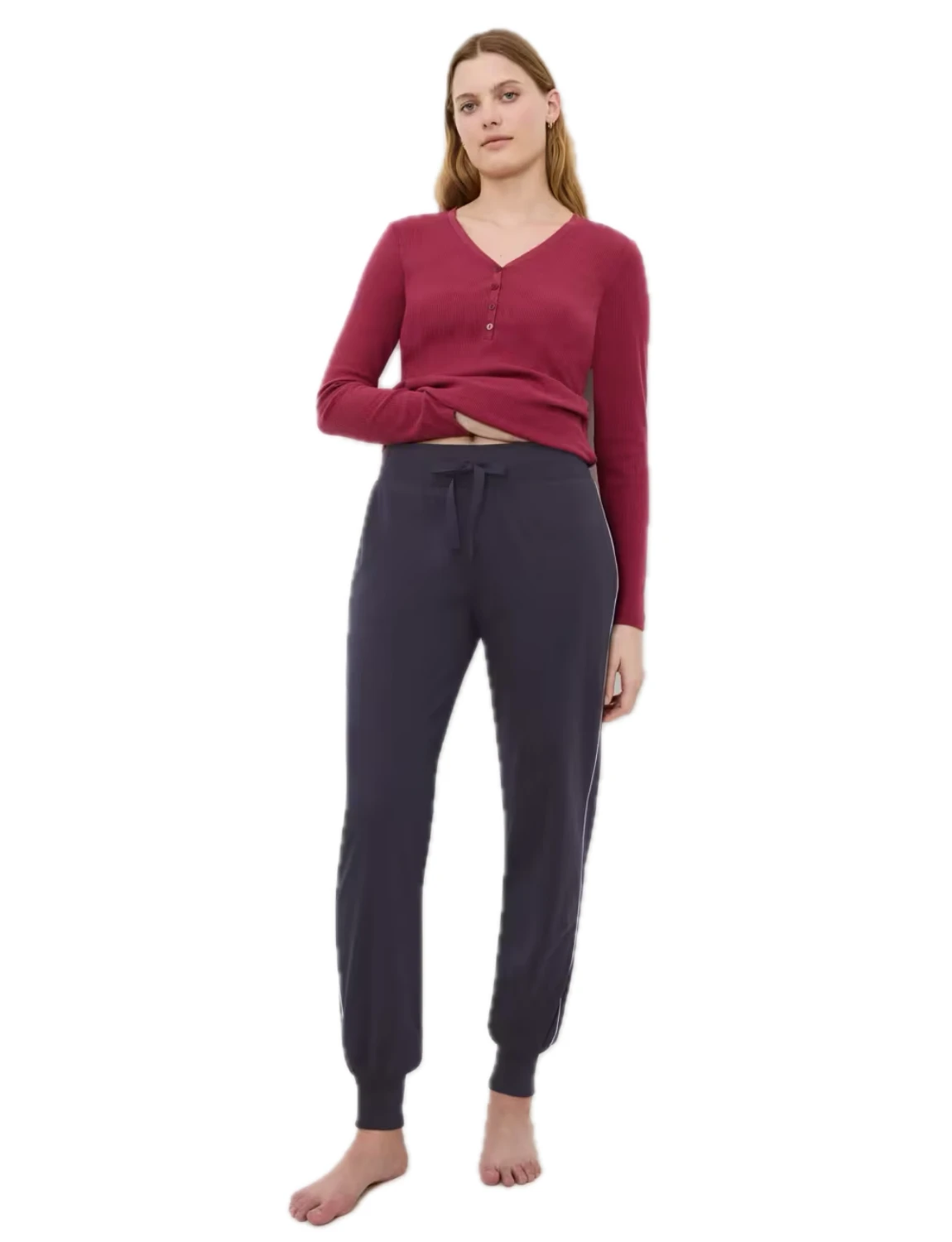 Παντελόνι πιτζάμας/φόρμα με ελαστική ζώνη και ελαστικές μανσέτες, πλαϊνό ριγέ για επιπλέον κομψότητα, κατασκευασμένο από απαλό ύφασμα ζέρσεϊ.