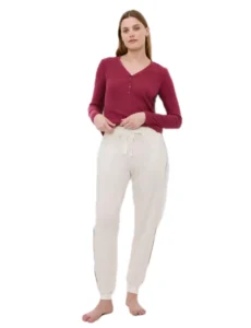 Παντελόνι πιτζάμας/φόρμα με ελαστική ζώνη και ελαστικές μανσέτες, πλαϊνό ριγέ για επιπλέον κομψότητα, κατασκευασμένο από απαλό ύφασμα ζέρσεϊ.