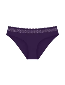 Γυναικείο εσώρουχο κανονικής κάλυψης με μαλακό λάστιχο στη μέση από ανακυκλωμένη δαντέλα. Μεταξένια υφή από ίνες modal και καβάλο από οργανικό βαμβάκι.