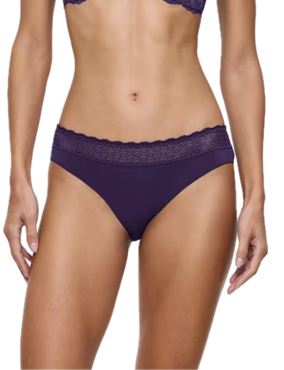 Γυναικείο εσώρουχο κανονικής κάλυψης με μαλακό λάστιχο στη μέση από ανακυκλωμένη δαντέλα. Μεταξένια υφή από ίνες modal και καβάλο από οργανικό βαμβάκι.