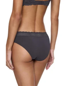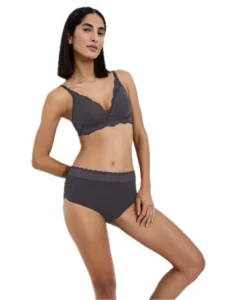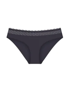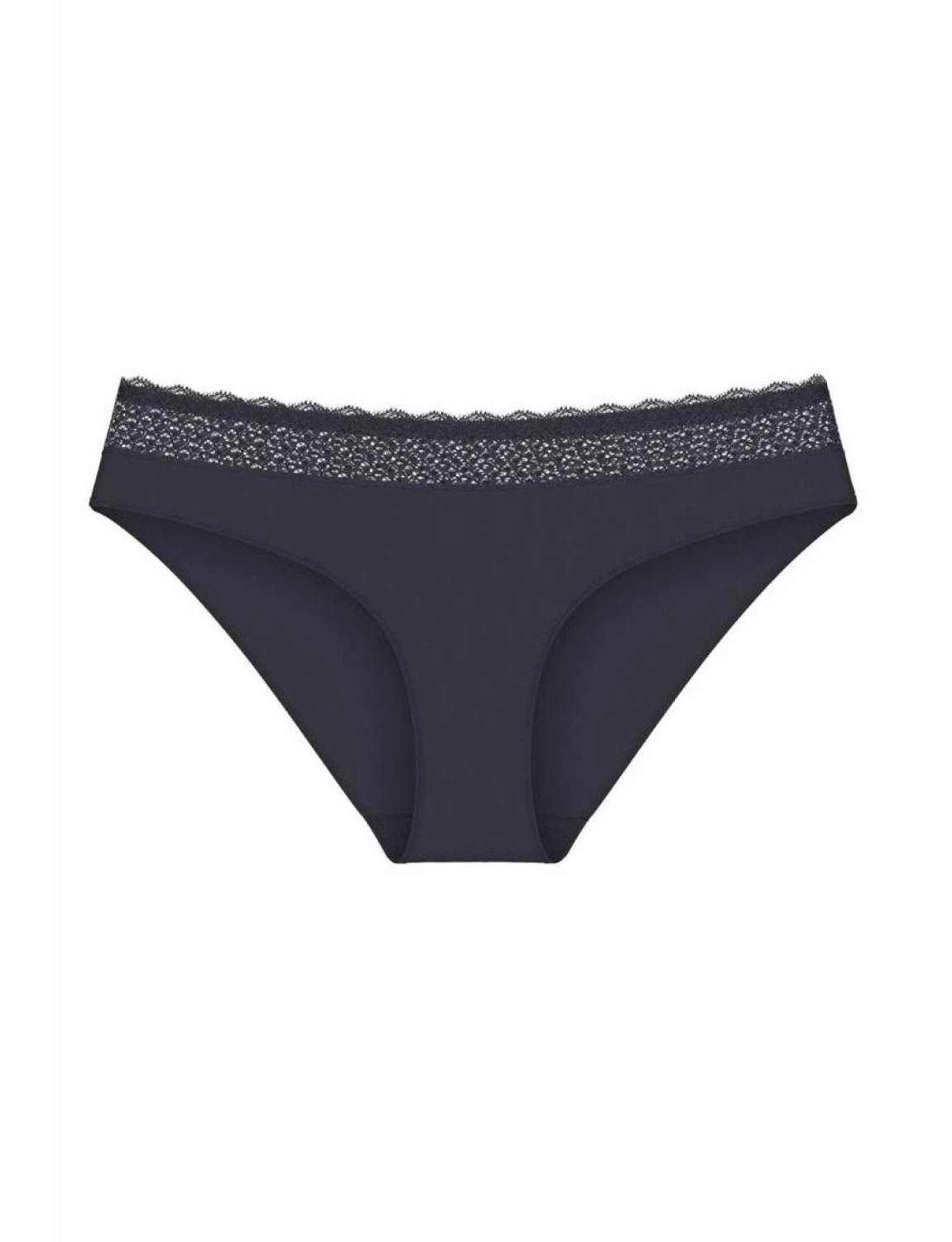 Γυναικείο εσώρουχο κανονικής κάλυψης με μαλακό λάστιχο στη μέση από ανακυκλωμένη δαντέλα. Μεταξένια υφή από ίνες modal και καβάλο από οργανικό βαμβάκι.