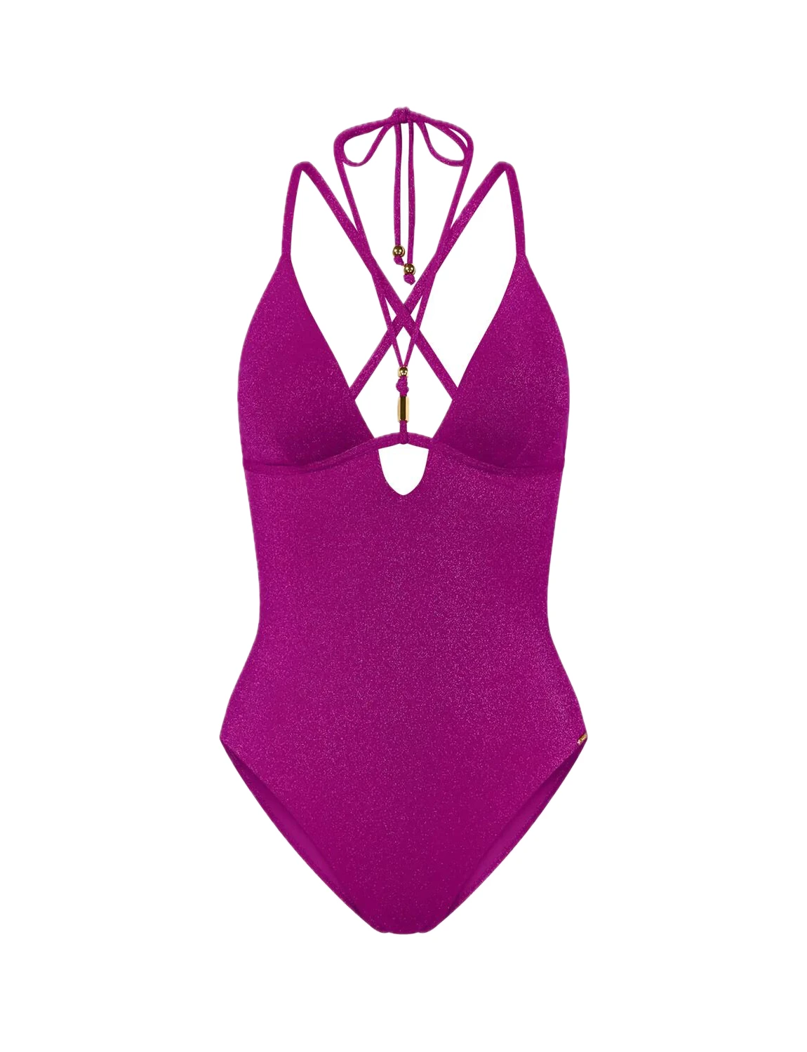 Ανακάλυψε το απόλυτα κομψό και θηλυκό ολόσωμο μαγιό, που συνδυάζει minimal αισθητική με διακριτική λάμψη. Το βαθύ ντεκολτέ με διακοσμητικό κρίκο και κορδόνι στο λαιμό αναδεικνύει τη σιλουέτα, ενώ η εφαρμογή του αγκαλιάζει το σώμα προσφέροντας άνεση και σταθερότητα. Ιδανικό για εμφανίσεις στην παραλία ή την πισίνα, αυτό το γυναικείο ολόσωμο μαγιό προσφέρει κομψότητα και στυλ σε κάθε σου εμφάνιση.