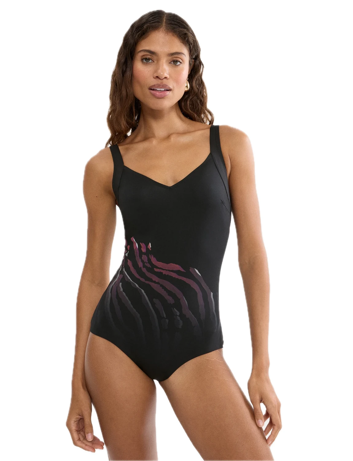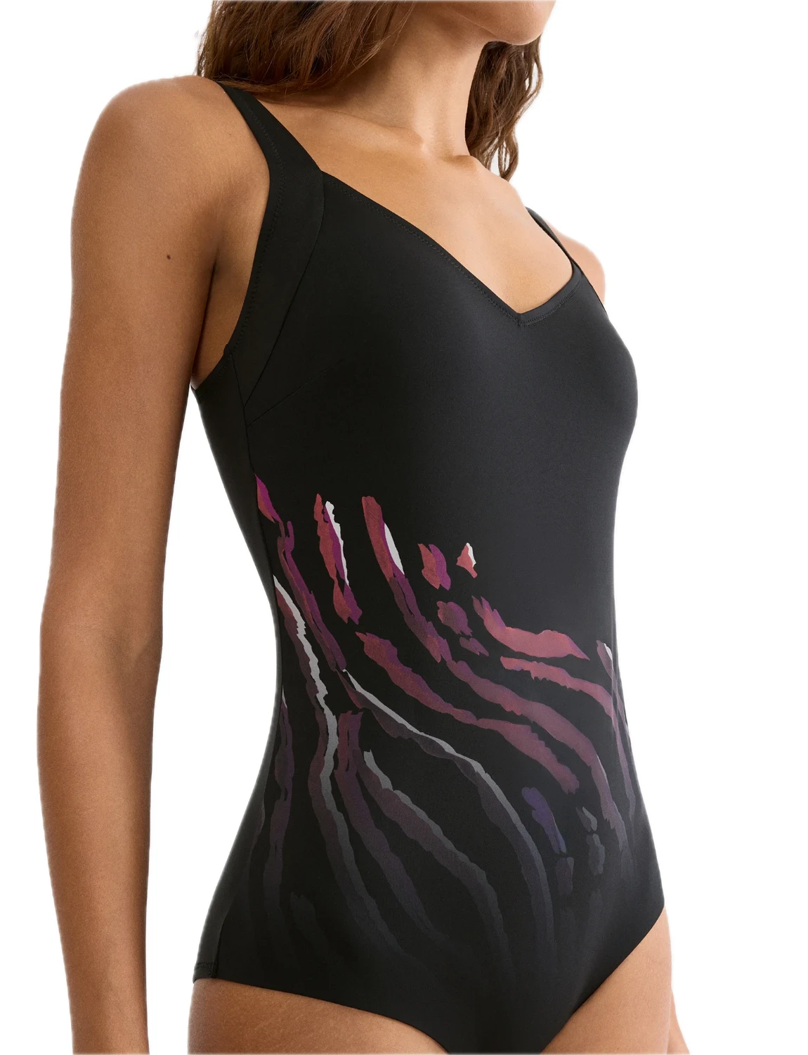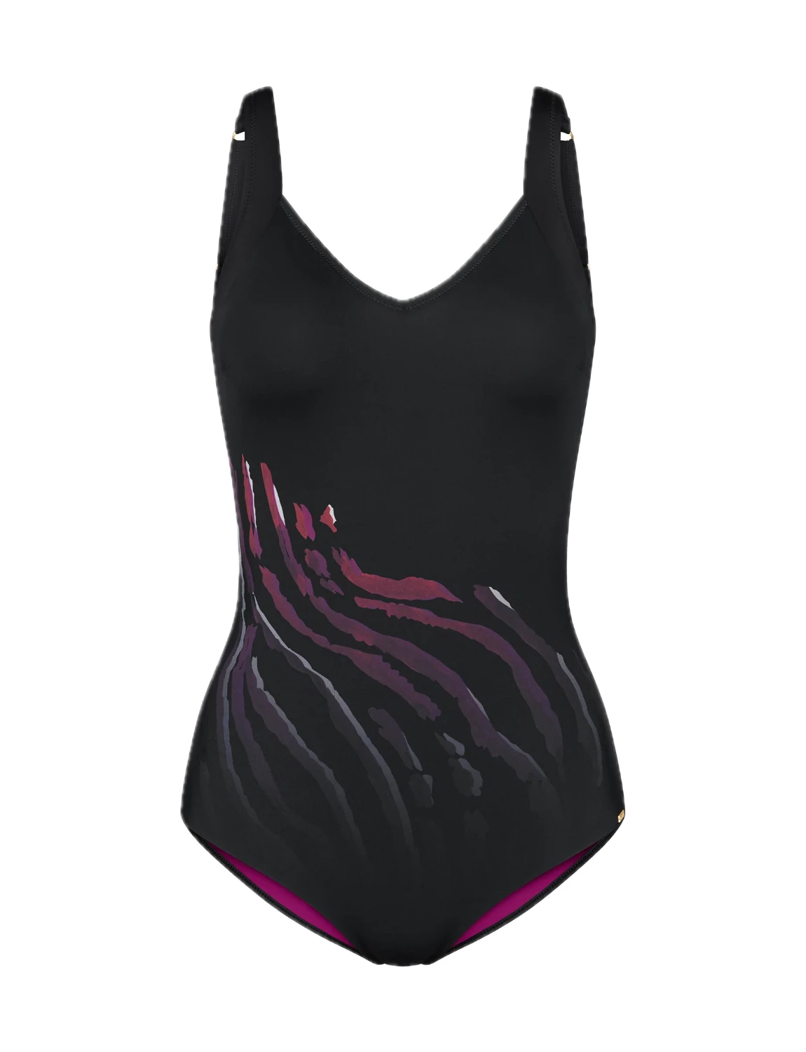 Ανακάλυψε την άνεση και την κομψότητα με αυτό το ολόσωμο μαγιό της Triumph, ιδανικό για γυναίκες που θέλουν στυλ και σιγουριά στην παραλία. Ο minimal σχεδιασμός σε σκούρα βάση συνδυάζεται με διακριτικό print σε αποχρώσεις ροζ και μωβ, δημιουργώντας ένα κομψό και μοντέρνο αποτέλεσμα. Η ενισχυμένη περιοχή στο στήθος προσφέρει σταθερότητα και φυσική στήριξη, ενώ οι φαρδιές τιράντες εξασφαλίζουν άνετη εφαρμογή χωρίς πίεση.