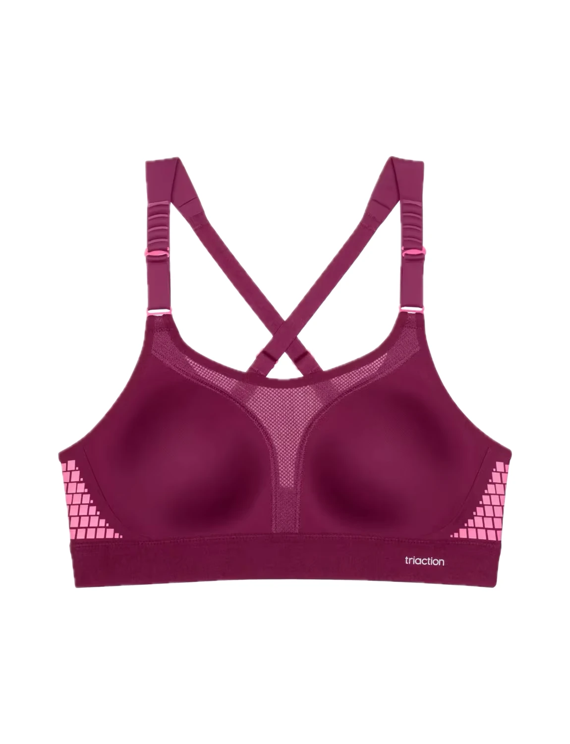 Triumph γυναικείο αθλητικό σουτιέν με 3D φόδρα για καλύτερη στήριξη και ενισχυμένες φαρδιές ρυθμιζόμενες τιράντες που φοριούνται και χιαστί. Ελαστικό, φαρδύ λάστιχο κάτω από το στήθος και μαλακό ύφασμα στο εσωτερικό με ειδικό αντιβακτηριδιακό ύφασμα που παραμένει στεγνό, ελέγχοντας τη θερμοκρασία του σώματος.