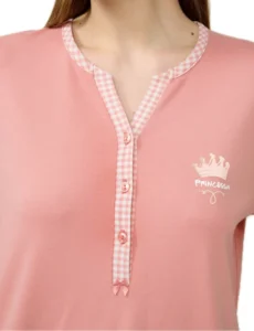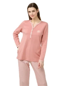 Άνετη και βαμβακερή πιτζάμα από τη Vamp σε απαλό ροζ. Το σετ αποτελείται από μακριμάνικη μπλούζα με στρογγυλή λαιμόκοψη που καταλήγει σε μικρό V και πατιλέτα με κουμπιά και ίσιο παντελόνι σε ροζ καρώ μοτίβο. Μια πιτζάμα φτιαγμένη από βαμβάκι, απαλή και διαπνέουσα, με ένα minimal και διαχρονικό σχέδιο.