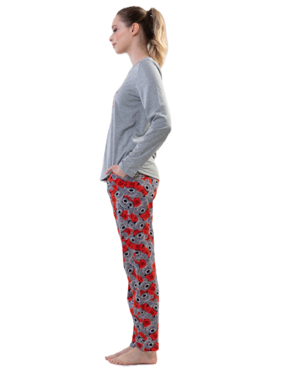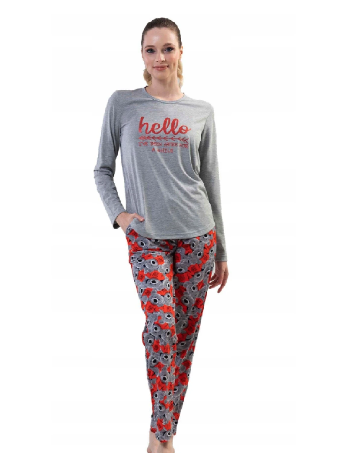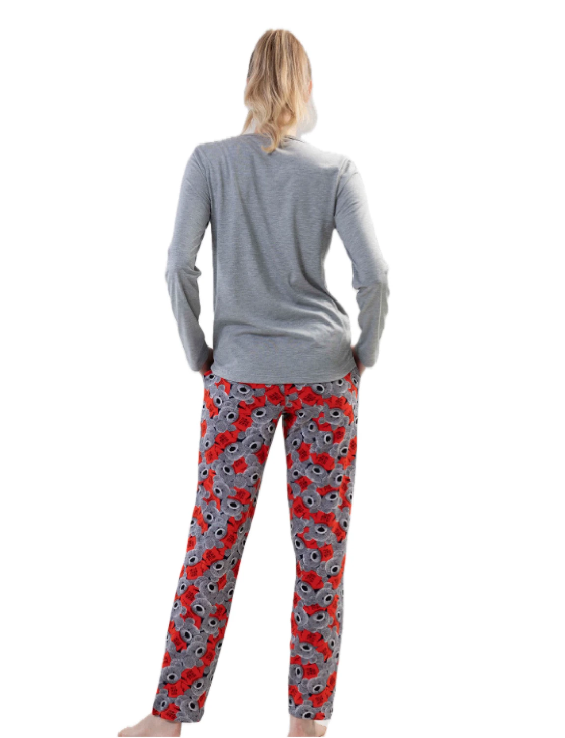 Γυναικείο σετ πιτζάμες. Το σετ αποτελείται από μακρυμάνικη μπλούζα με στρογγυλή λαιμόκοψη και μακρύ παντελόνι.