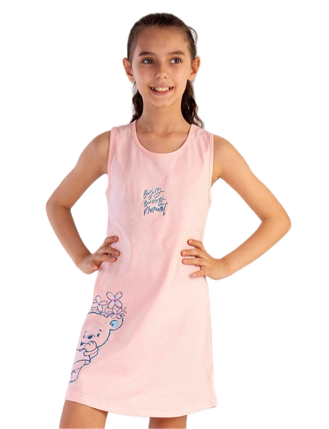 Παιδικό βαμβακερό νυχτικό Vienetta. Διαθέτει στρογγυλή λαιμόκοψη φαρδιές τιράντες και τύπωμα.